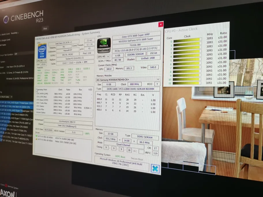 Доставка в Мск из Китая молниеносная, 10 дней. Брал за 17200 с купоном 1500 на распродаже. Курс подскочил, таможне не платил. Коробка и планки в толстом слое пупырки. Всё в целости, хотя на коробке как обычно плясали. Biios 05/2020, перешил на 08/2020 с открытыми таймингами, но без анлока. Проц уже на плате, контакты чистые, крышку дочищал спиртом (продавец похоже проверял) . Проц Malay, степпинг 2. Дрова для платы заранее скачал с сайта huananzhi, из коробки LAN не работает. Память одинаковая IBM p/n 47J0136 на чипах японской Elpida, двухранговая DDR3 1333MHz PC3L-10600 ECC 1.35v перешитая в 1600 12800 с одинаковыми профилями и серийниками. Долепили стикер QIYIDA China. Плашки 2012 года, по виду уставшие. Память дальше уже не гонится, но на 1600 с таймингами 9-9-9-9-24 уверенно держит memtest и aida. На фото температуры проца без анлока (под Snowman 6 трубок 2 вентиля) и памяти после часа стресса aida, и скорости NVME Kingdian 512 в верхнем слоте. За эти деньги всё огонь.