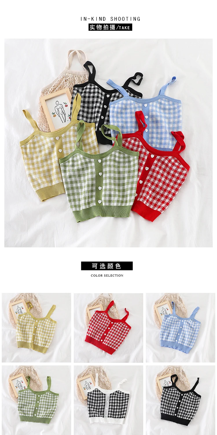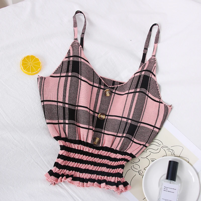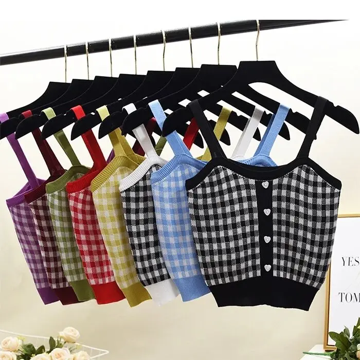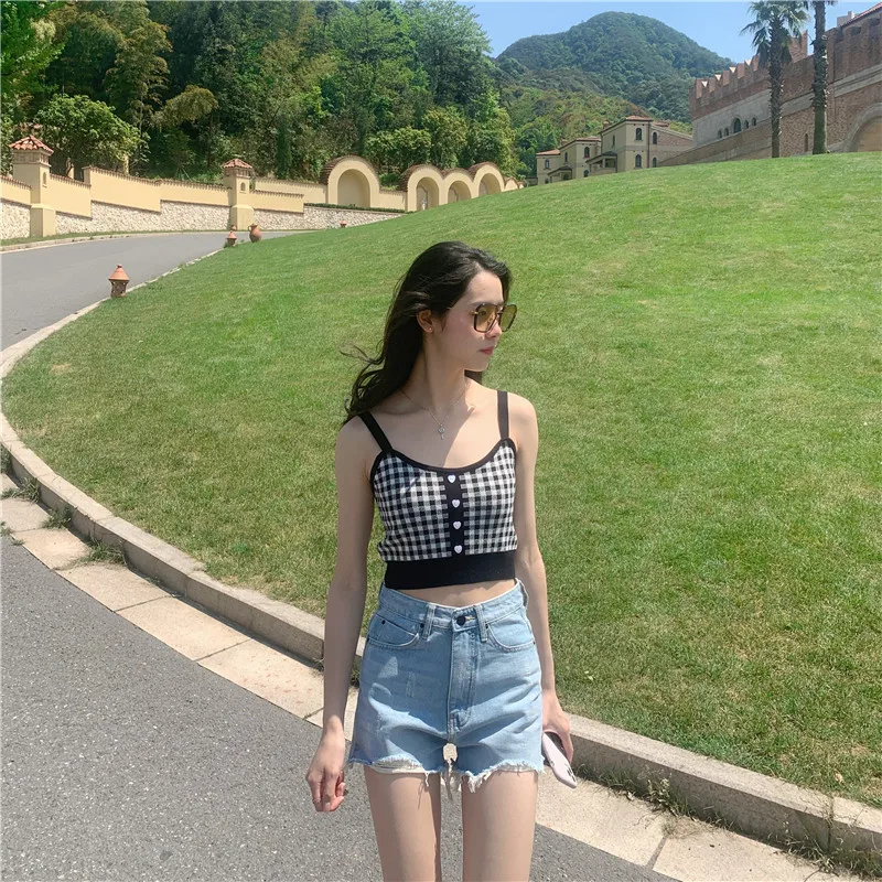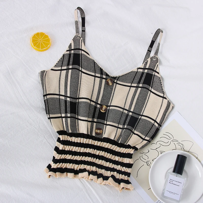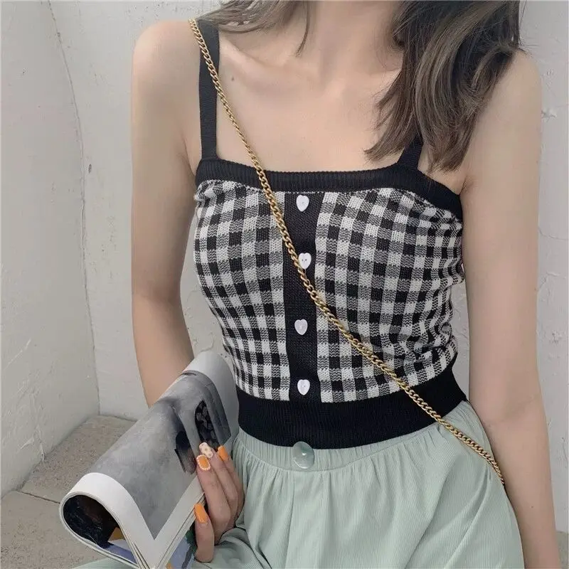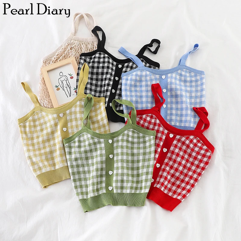 Женский трикотажный топ с жемчужным дневником, ретро-топ в клетку, винтажный короткий топ на пуговицах, трикотажные шикарные футболки, Топ