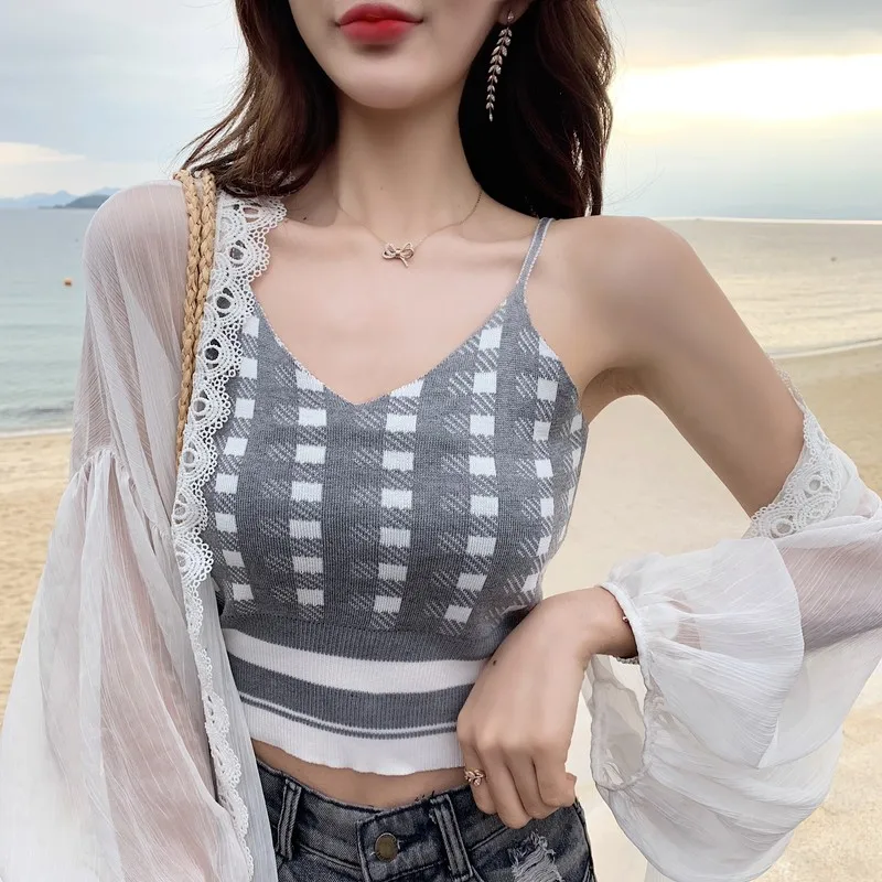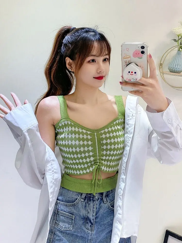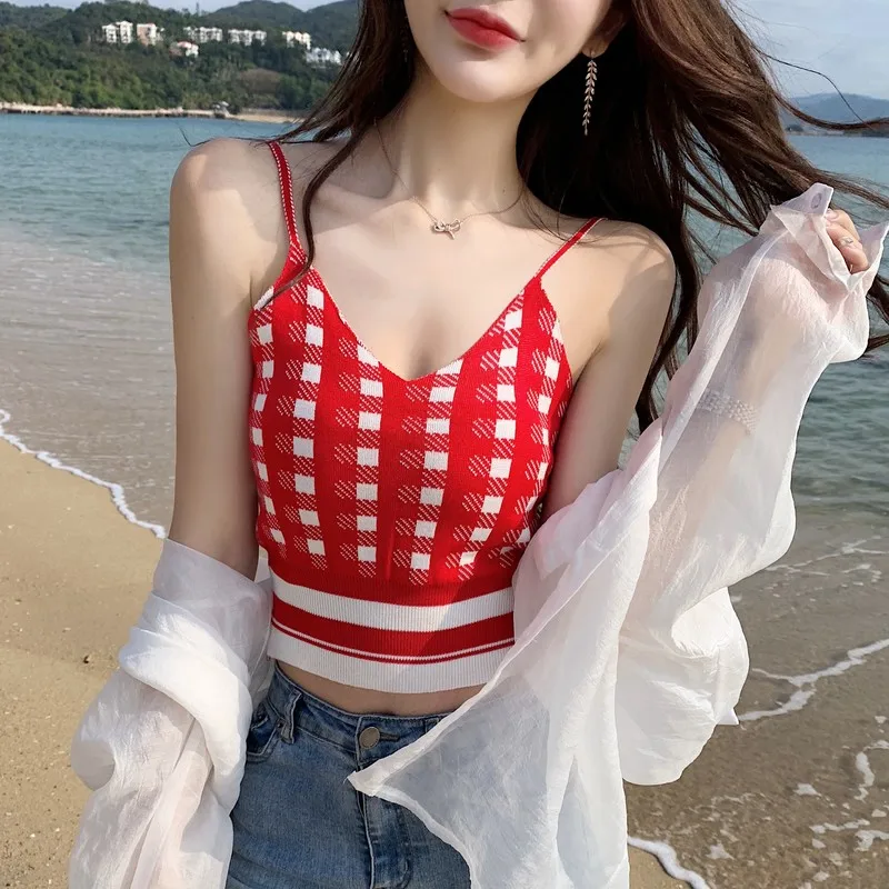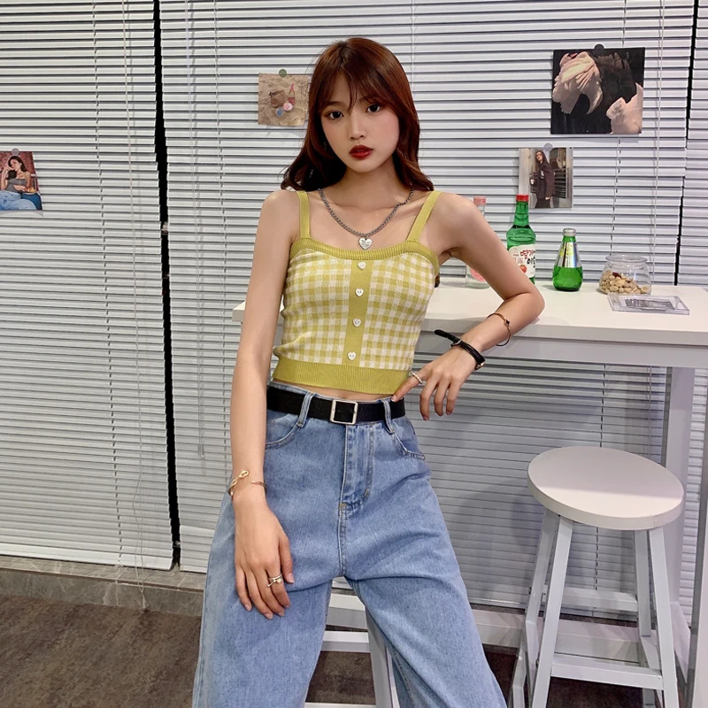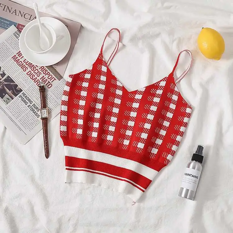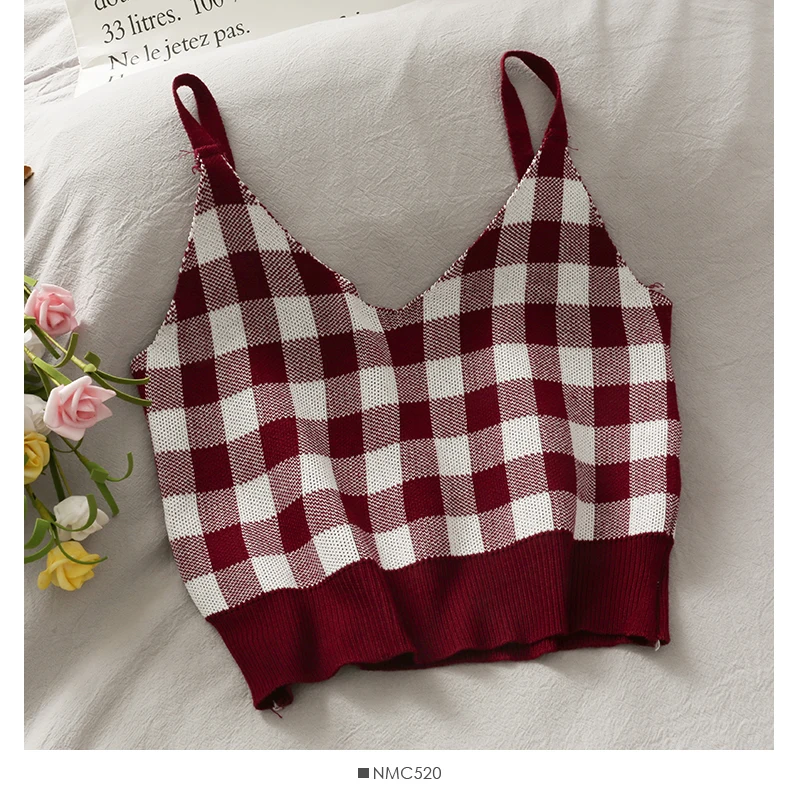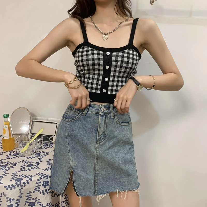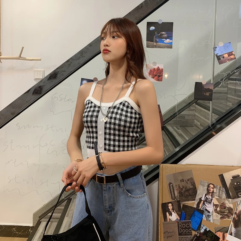 Женский трикотажный топ с жемчужным дневником, ретро-топ в клетку, винтажный короткий топ на пуговицах, трикотажные шикарные футболки, Топ