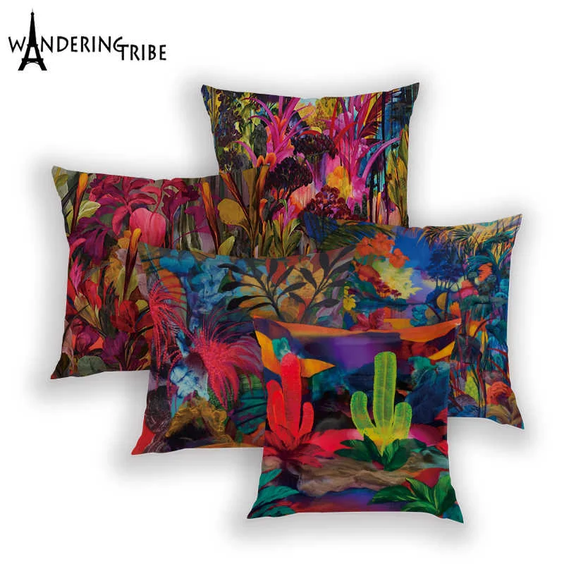 Ретро старомодный чехол для подушки, потертый чехол для подушки с рисунком маслом, чехол для подушек с принтом тропических растений, чехол s