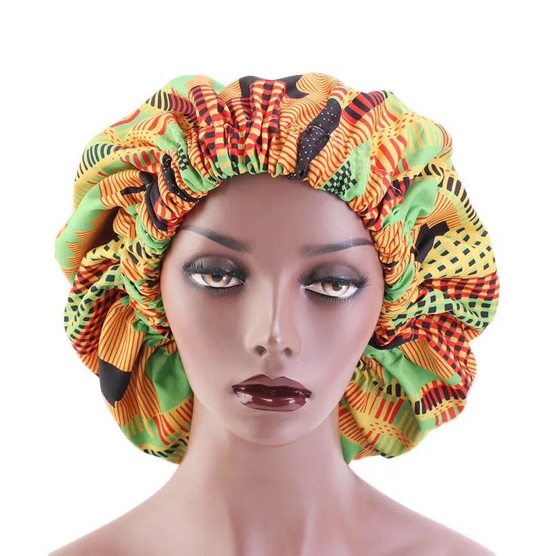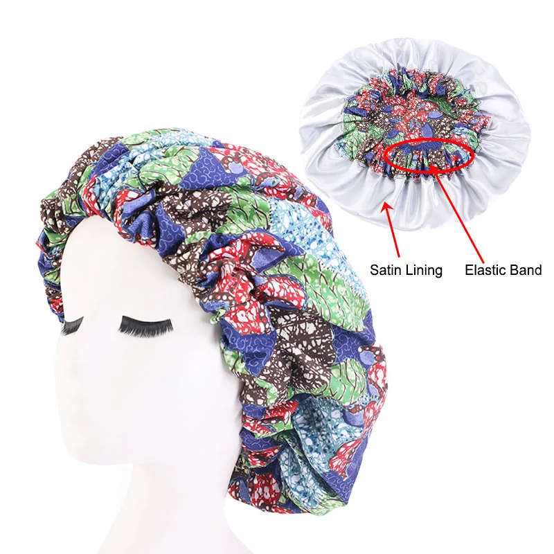 Новая Женская атласная шапка с Африканским узором, сатиновая шапка для сна и ночного сна, головной убор, головной убор, очень большие Сатиновые шляпы с подкладкой, оптовая продажа