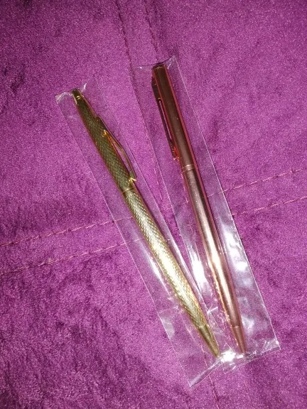 Ручки классные,тяжелые,в руке удобно держать и доставлены за две с половиной недели.Я довольна,только родная паста чёрная,но это не беда,стержни у продавца докупила синие