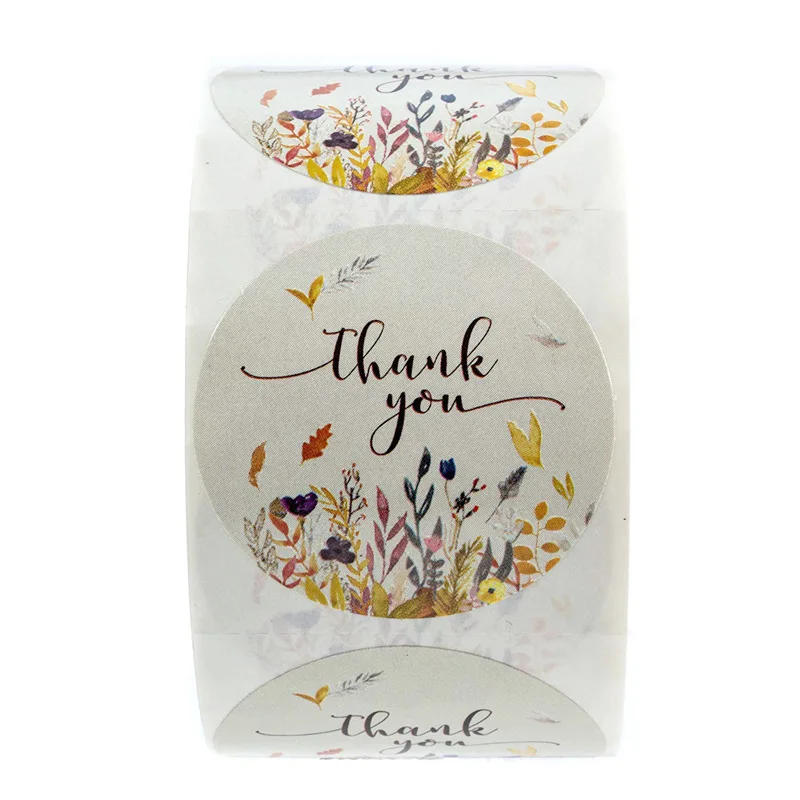 Осенние цветочные благодарим вас наклейки этикетки для печати упаковки персонализированные украшения стикер для канцелярских товаров 500 штрулон Круглая этикетка