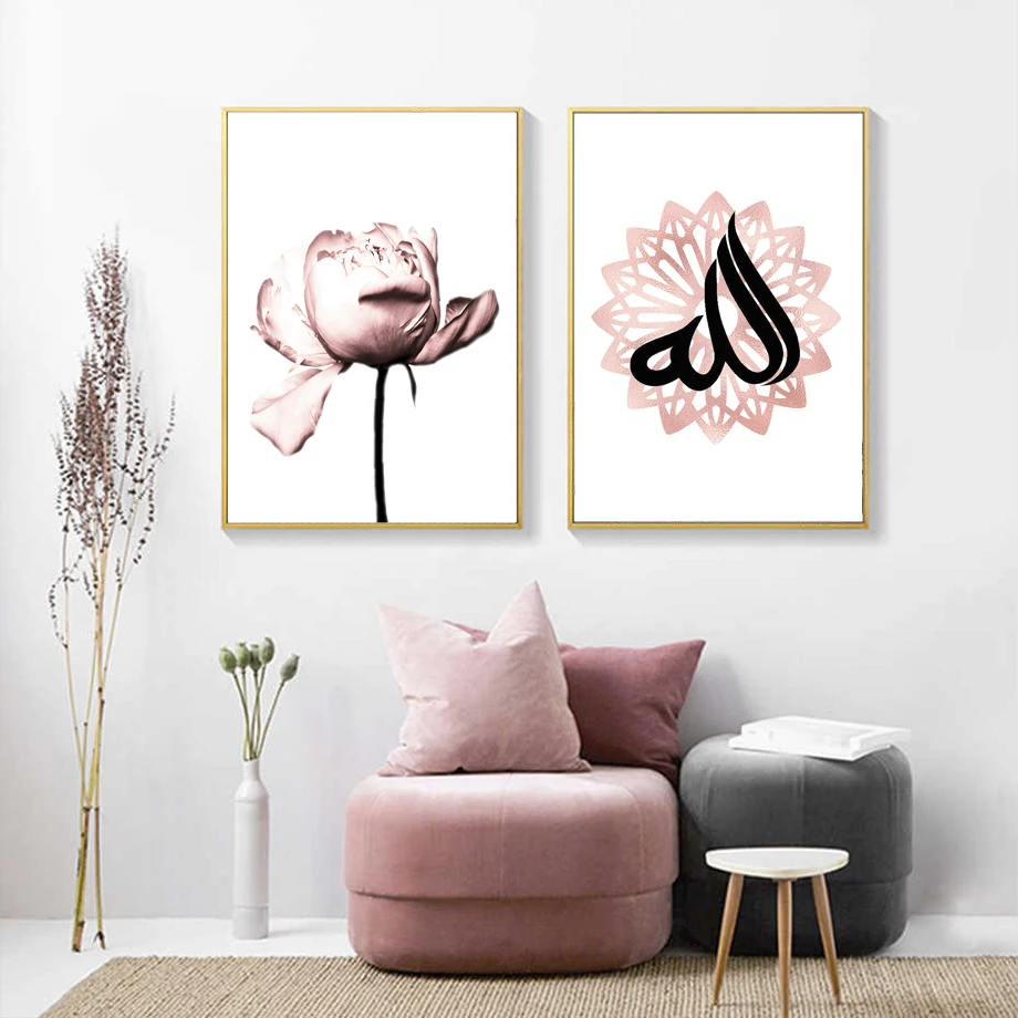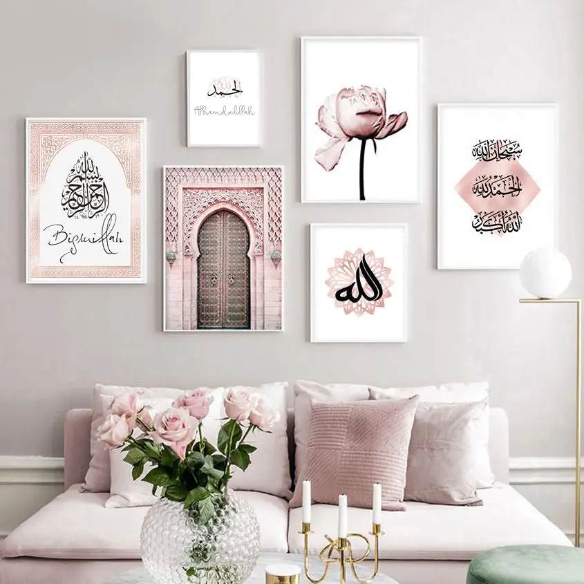 Allah исламское искусство на холсте плакат розовый цветок старые ворота мусульманские скандинавские плакаты и принты настенные картинки для современного декора мечети