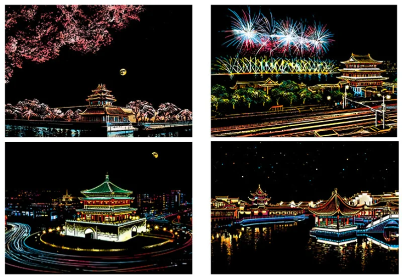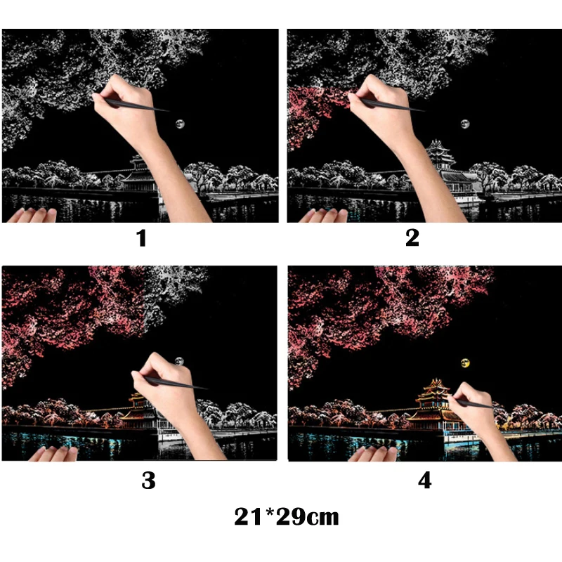 1 Набор старинная архитектура А4 ночная сцена поцарапать город ночная сцена скретч-карта ручной работы DIY трафареты шаблон картины