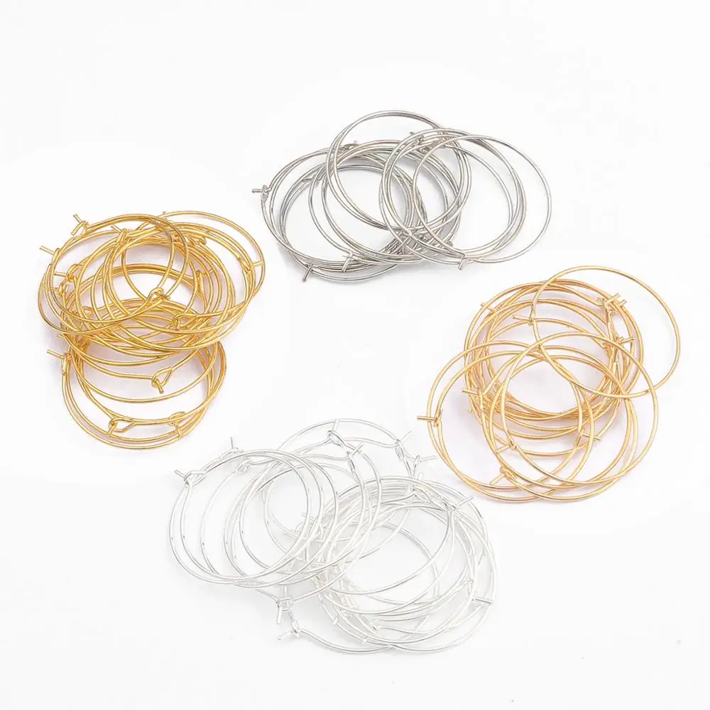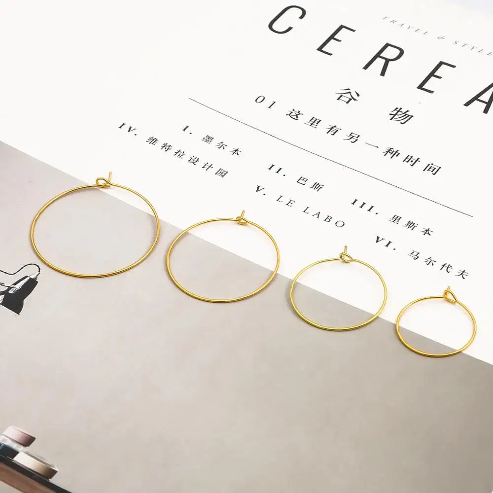 Новые серьги-обручи KC золотого цвета, 50 шт.лот, 20, 25, 30, 35 мм, большие круглые ушные обручи, проволочные серьги для самостоятельного изготовления ювелирных украшений