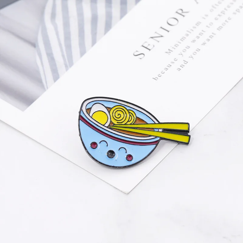 Эмалированная рамен, суп в японском стиле, эмалированная металлическая подставка под яйца, миску, лапшу, значок, экспресс-любовь для еды, джинсовая кожаная булавка