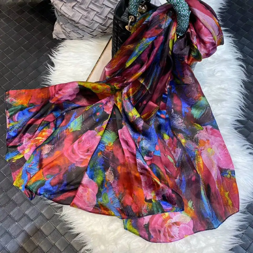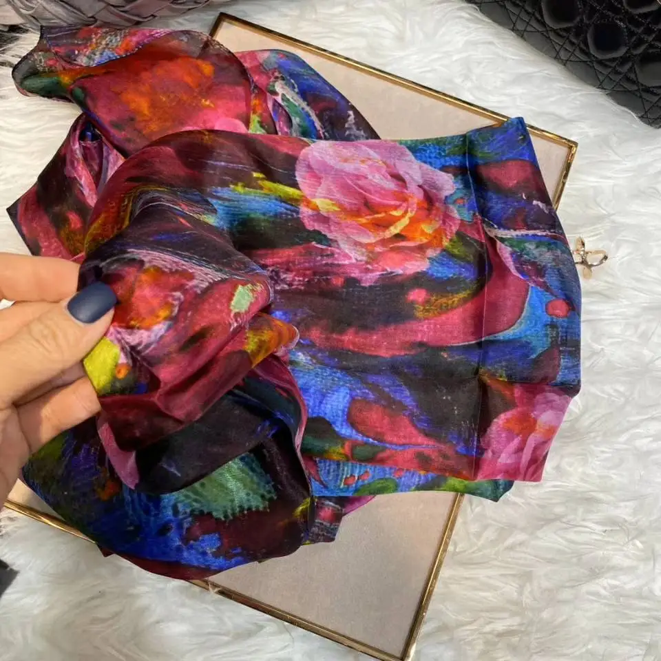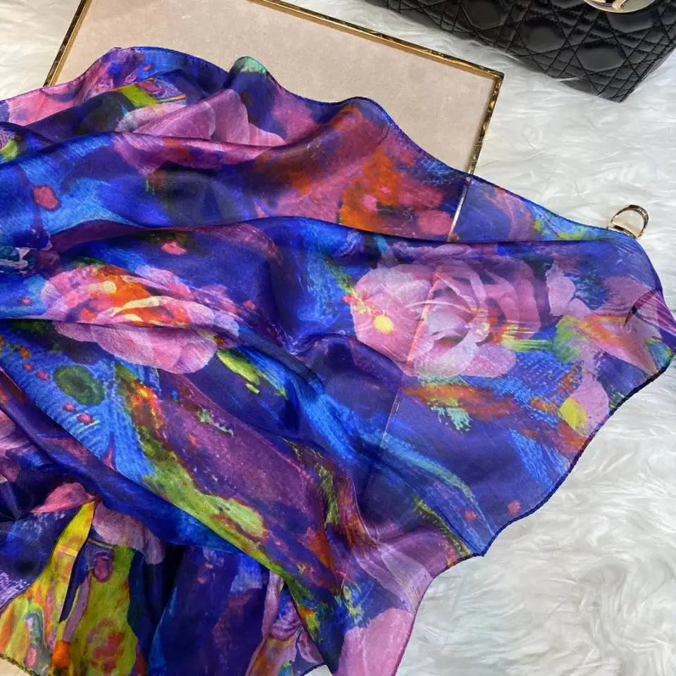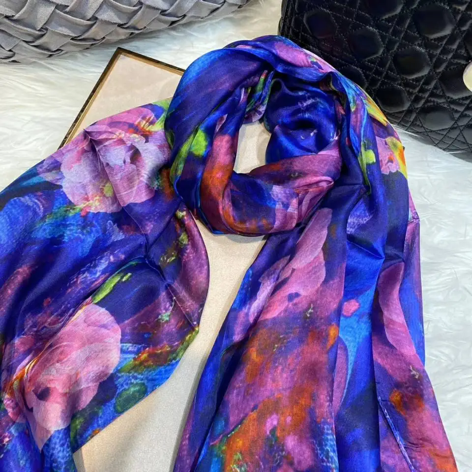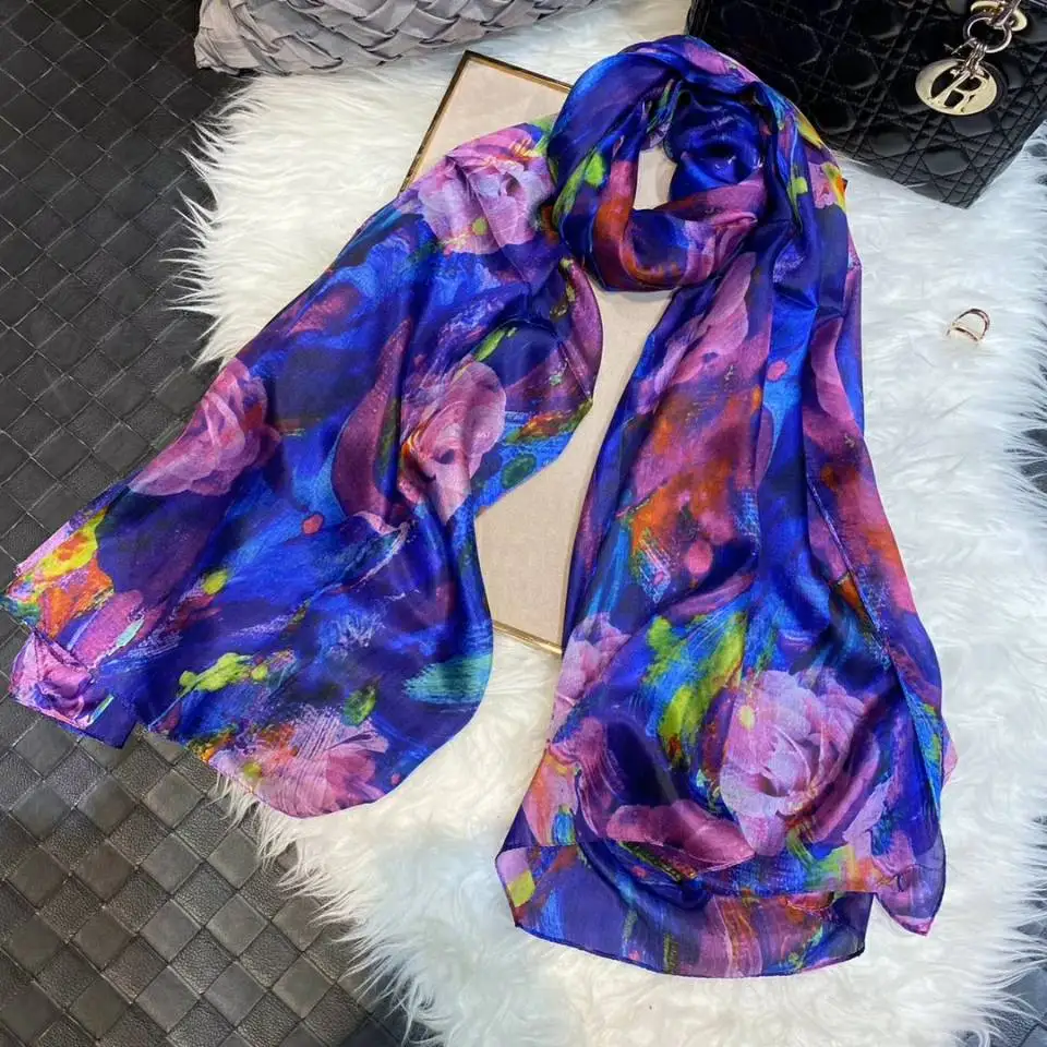 Шаль шелковая Женская, голубая, розовая, летняя, 100% натуральный шелк