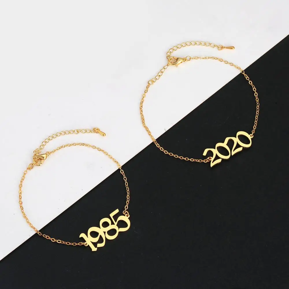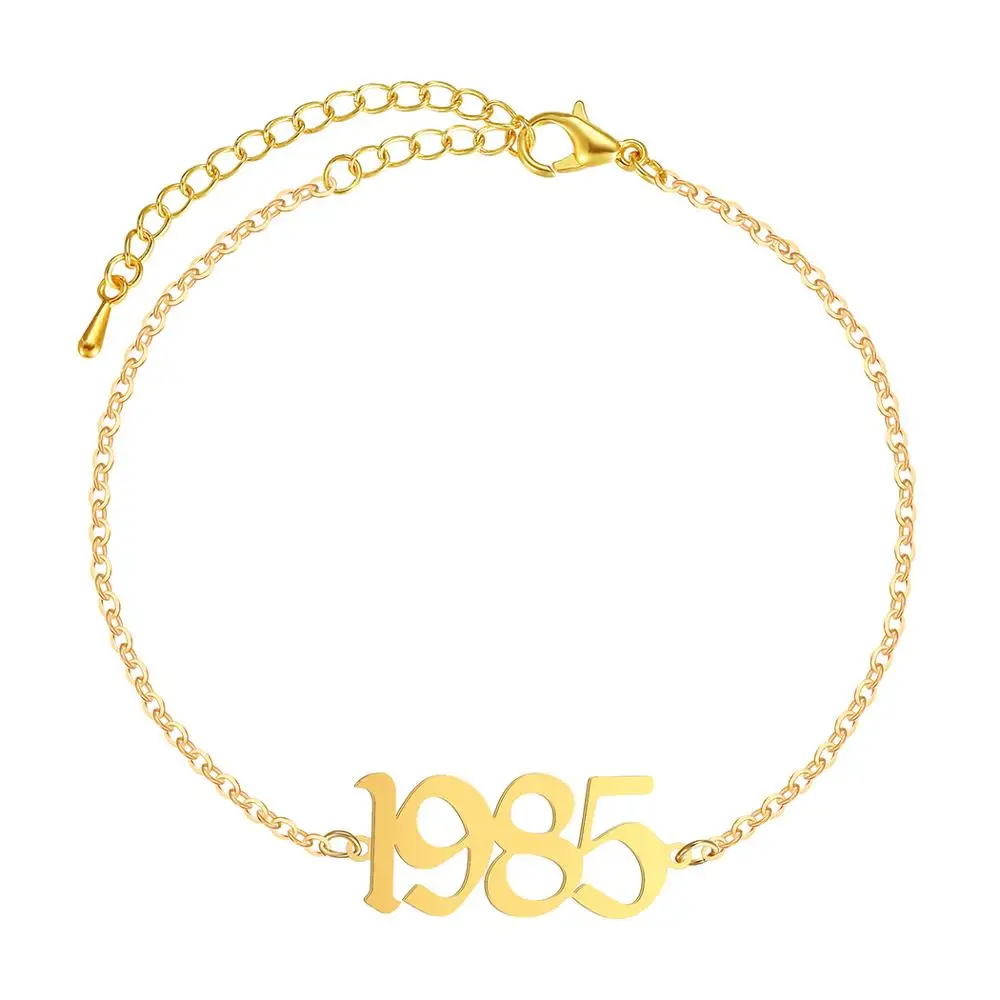 Браслет-цепочка женский с подвесками в виде цифр 1985-2020, из нерж...