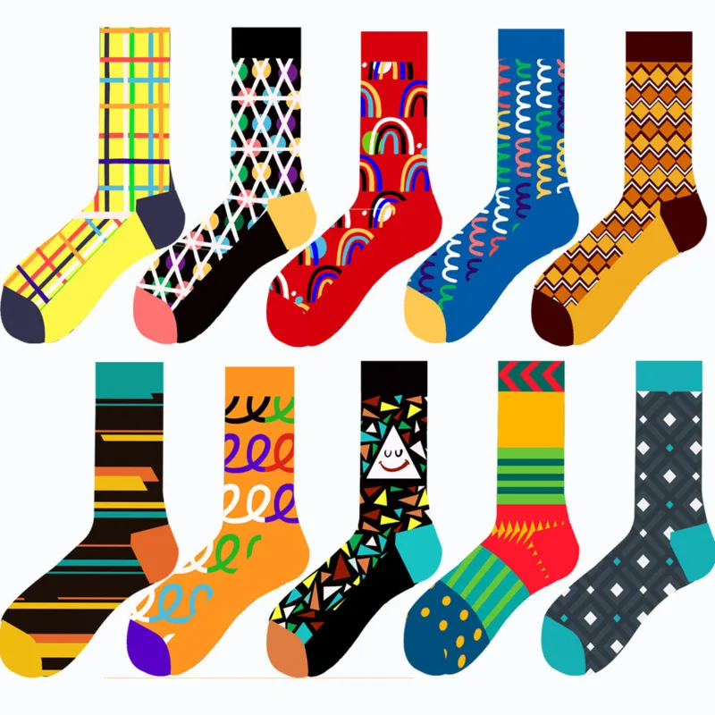 DTSTARZG1 пара мужских носков из чесаного хлопка, яркие цветные смешные мужские носки, мужские носки до середины голени, носки для бизнеса, повседневные платья, свадебный подарок