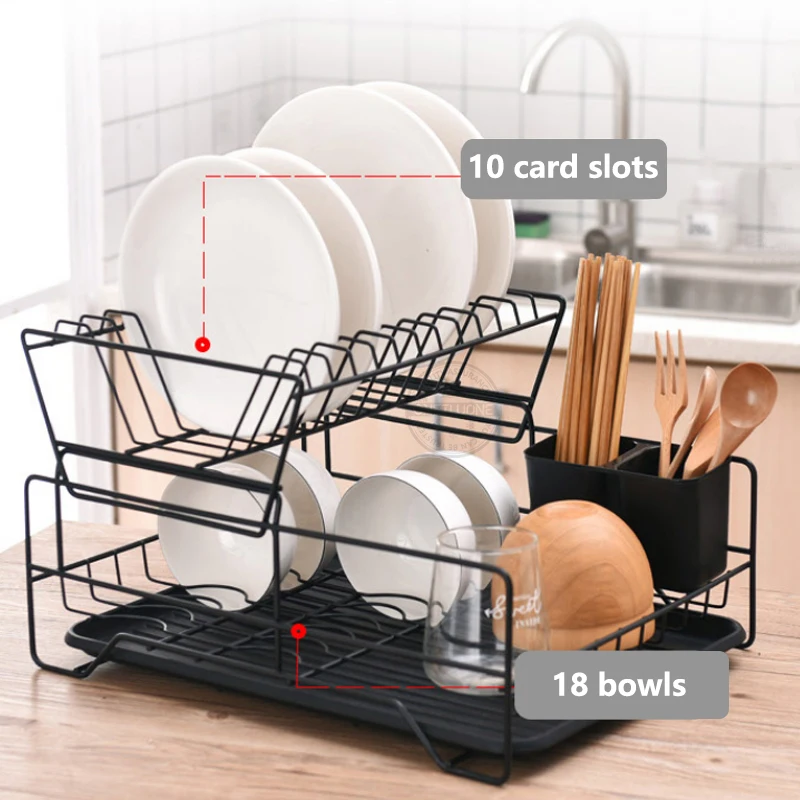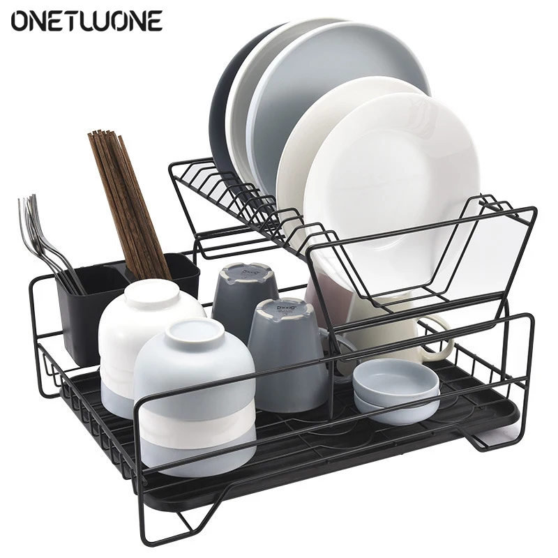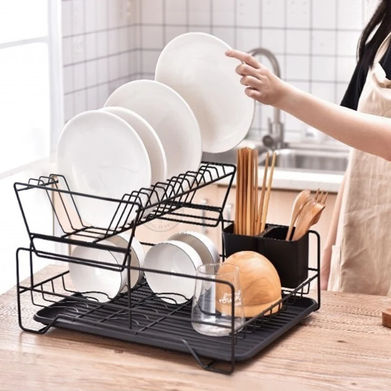 Кухонная стойка для посуды, Двухуровневая полка для тарелок, чашек, полка для слива, корзина, подвесная полка для хранения посуды