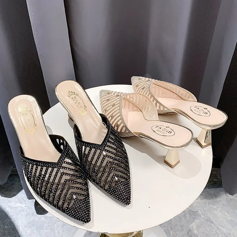 Женские мюли; Шлепанцы с прошитым дизайном; Модные сандалии с острым носком; Пикантные летние шлепанцы без застежки; Удобные шлепанцы