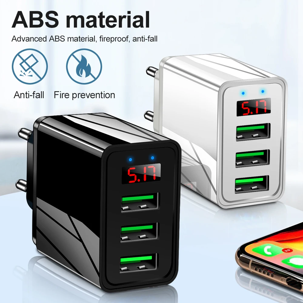 Зарядное устройство с 3USB-портами и цифровым дисплеем, 5 В, 3,1 А