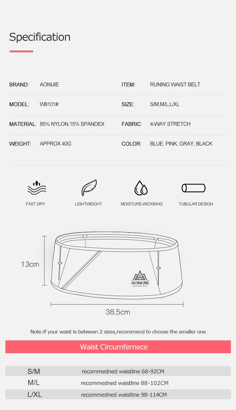 Пояс для бега AONIJIE W8101, гидратационный поясной кошелек для пут...