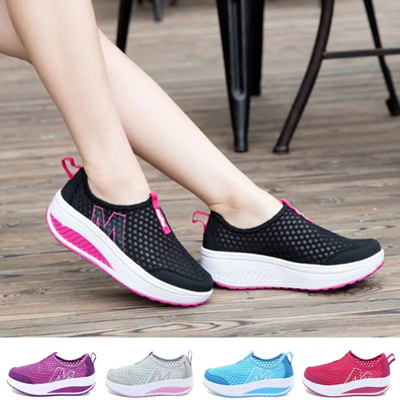 Женские туфли-качалки на платформе, дышащие легкие кроссовки с перф...