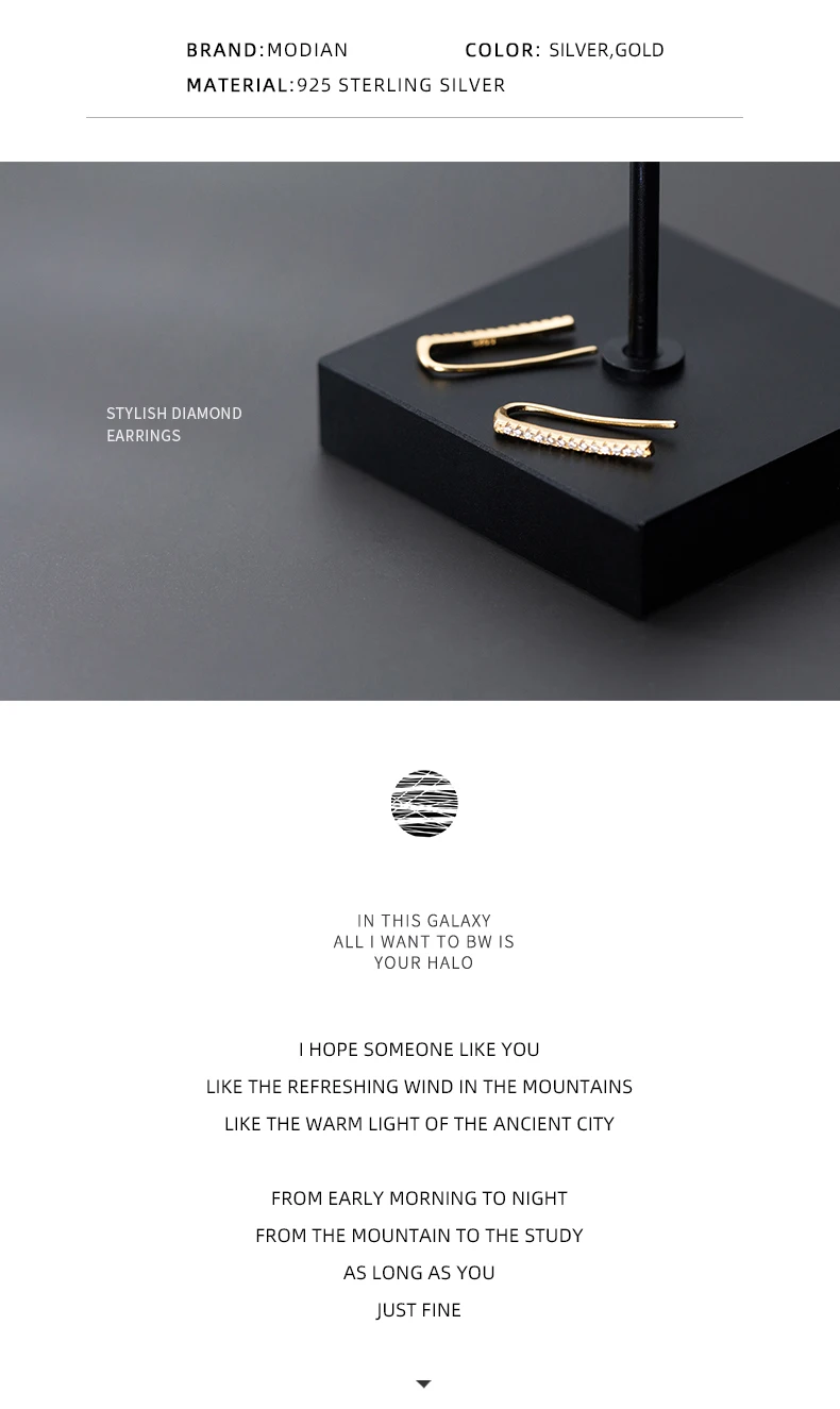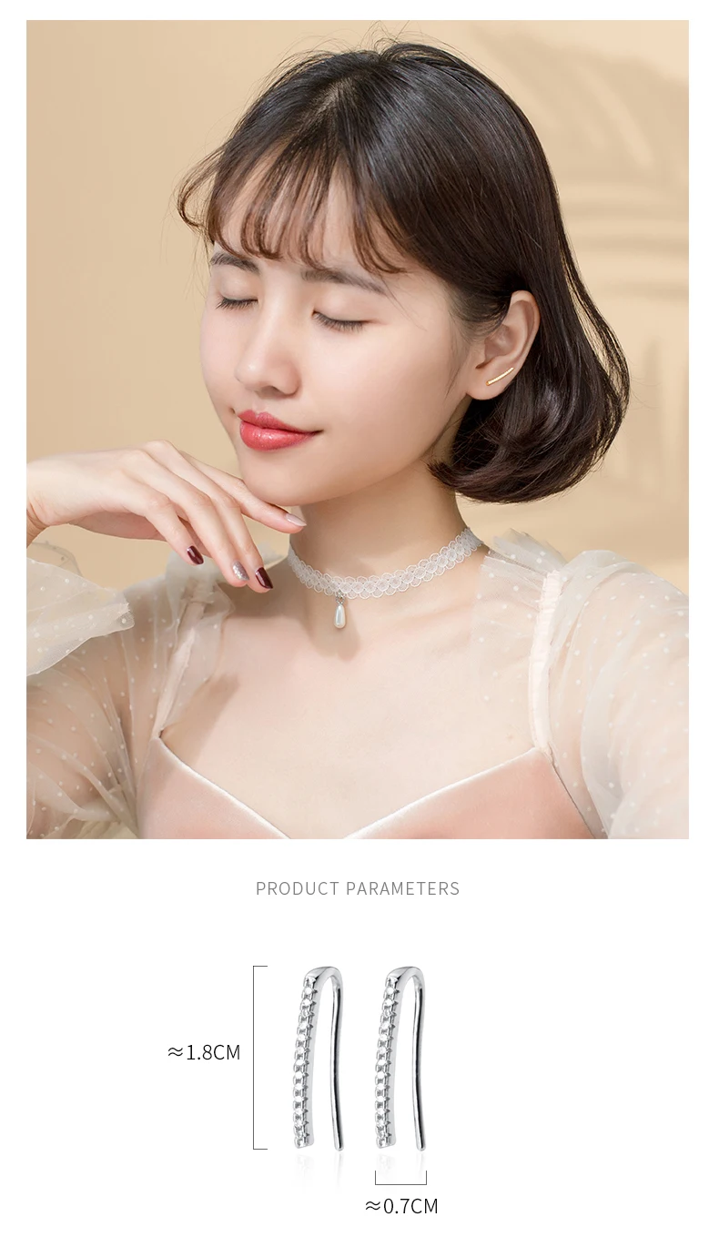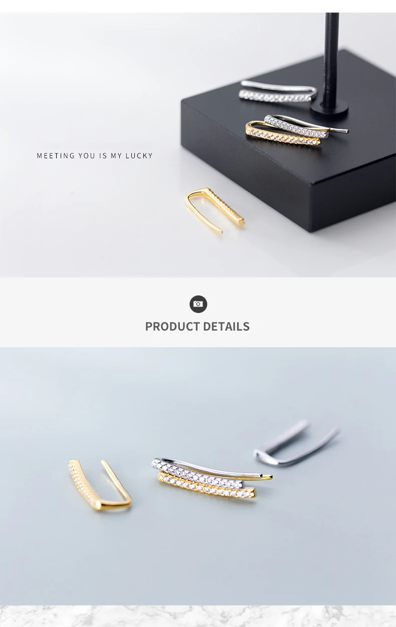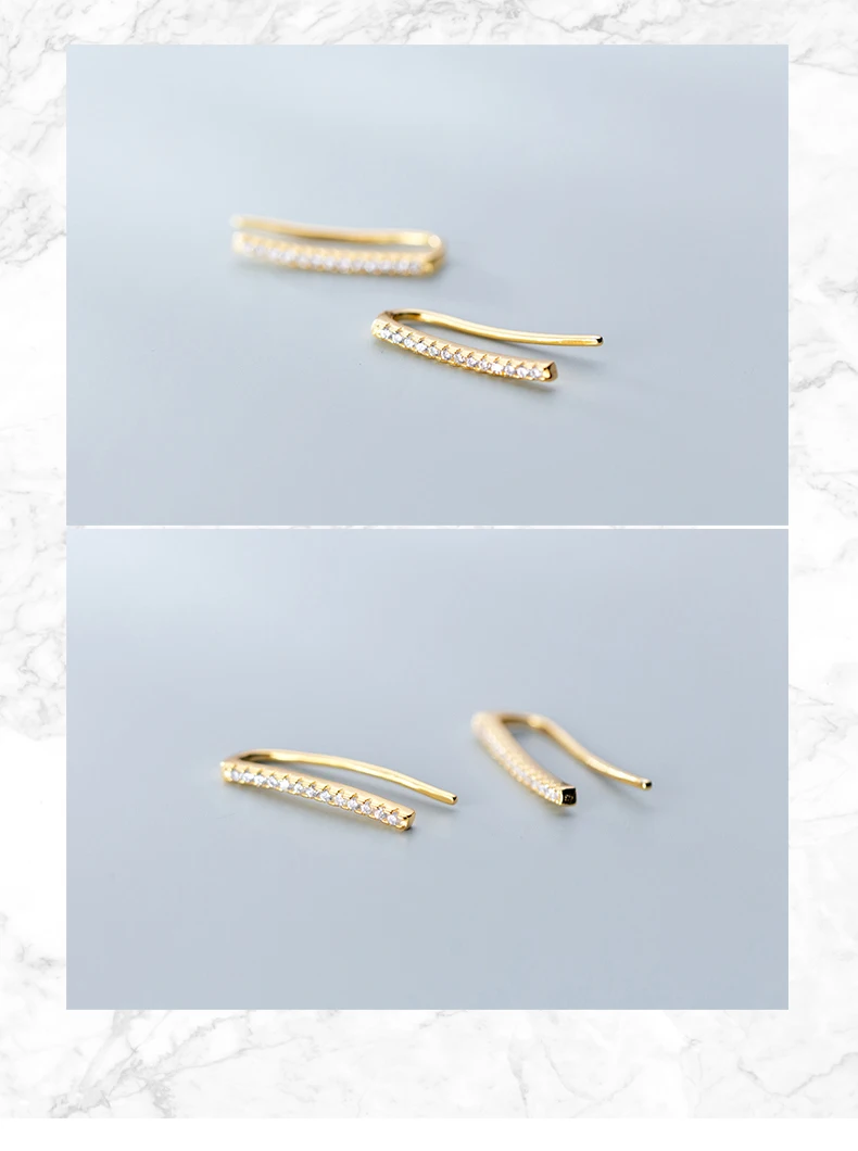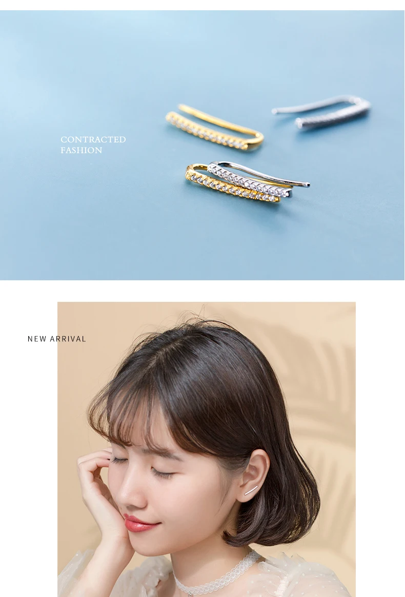 Серьги-гвоздики женские U-образные из серебра 925 пробы с цирконом