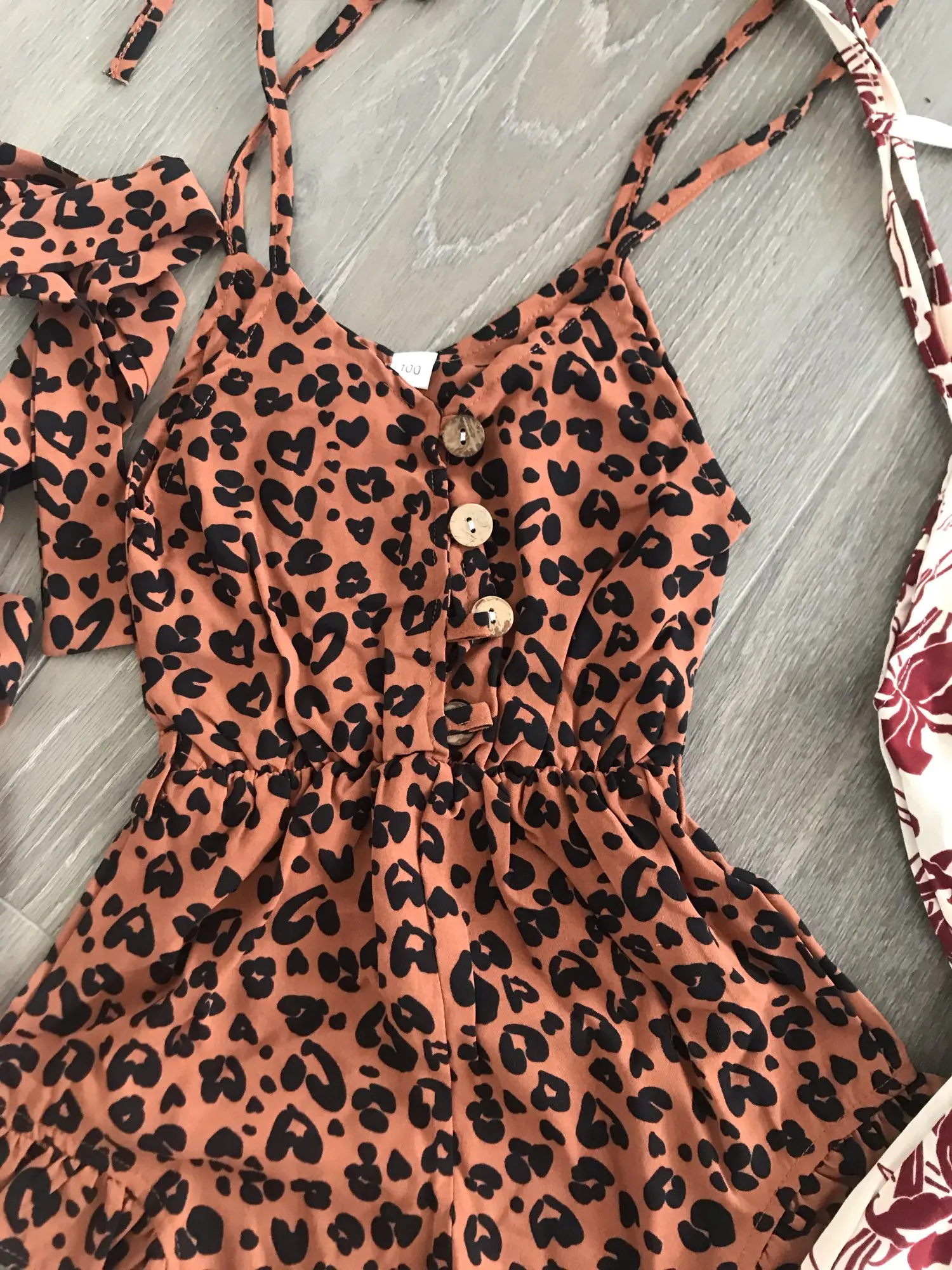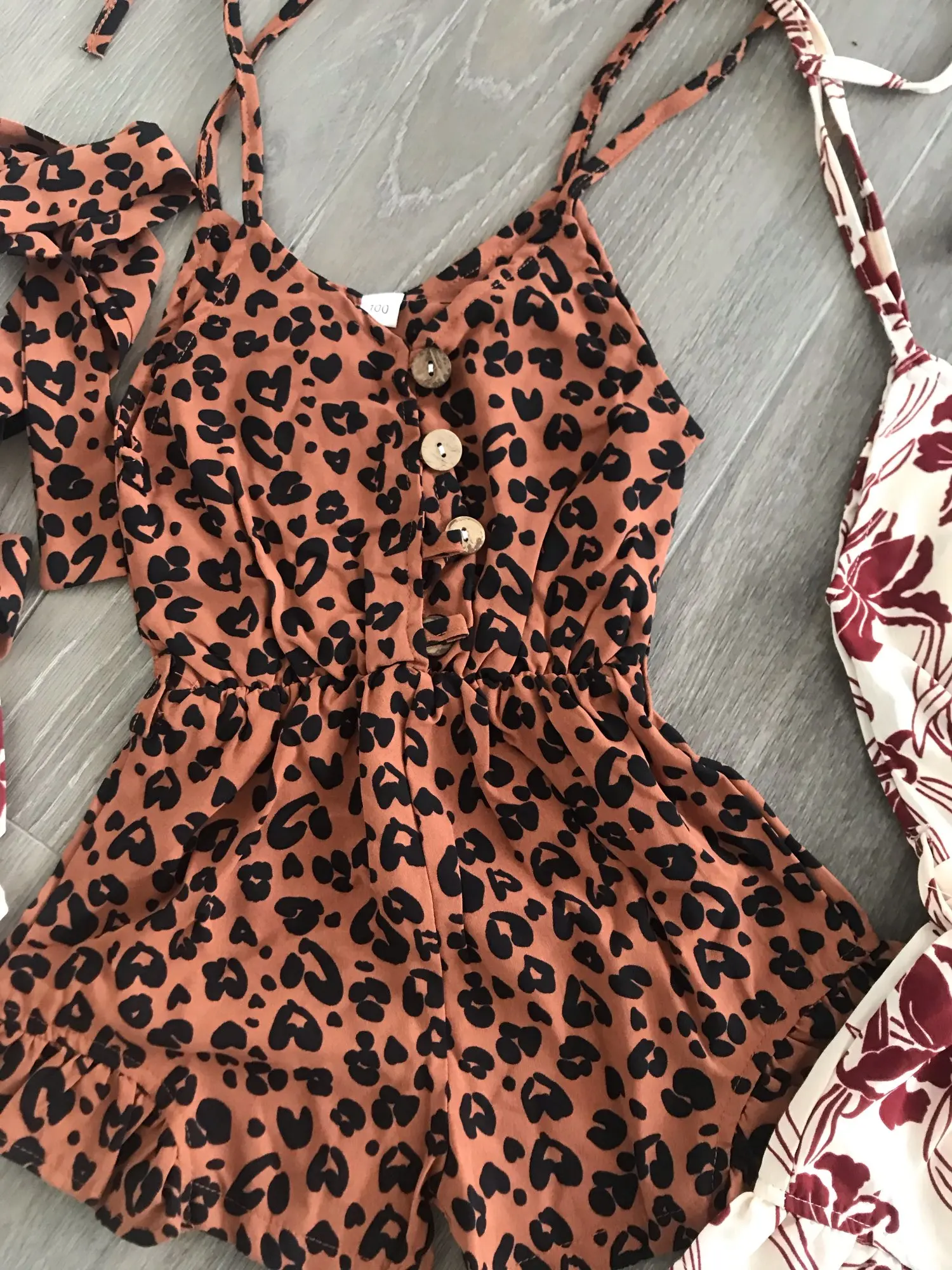 Комбинезон детский летний на бретелях, с леопардовым принтом, без рукавов, 2020