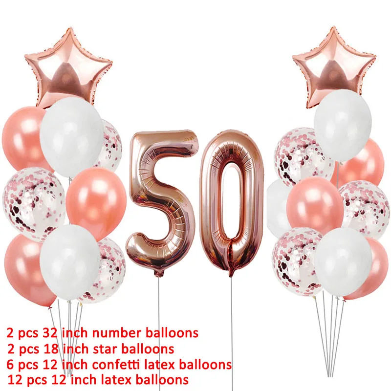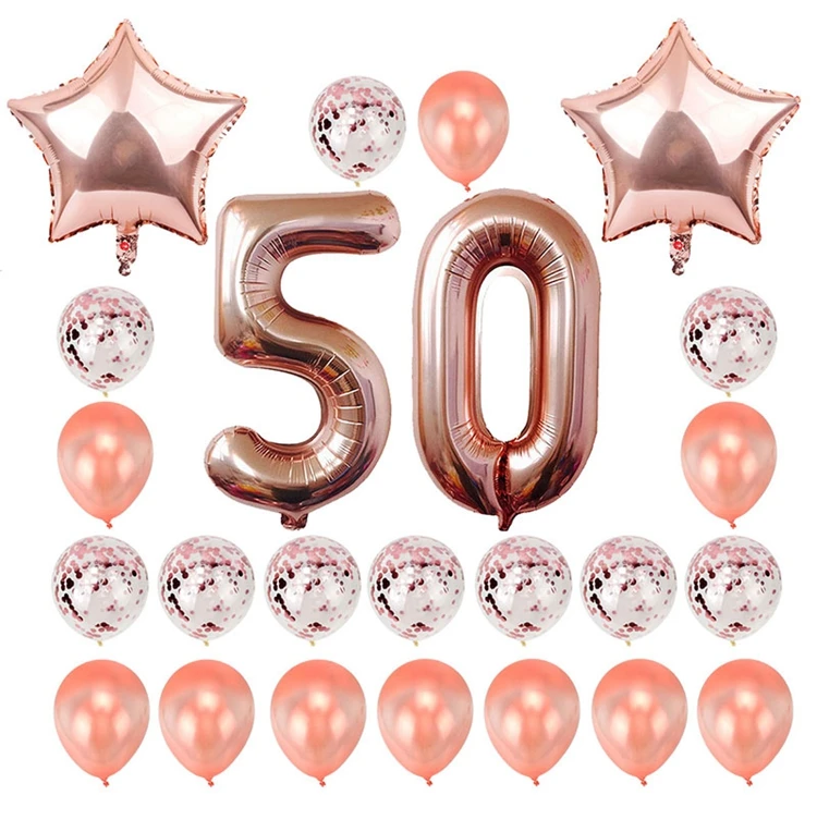 Фольгированные воздушные шары из розового золота с номером 50, украшения для дня рождения 50, товары для мужчин и женщин 50 лет
