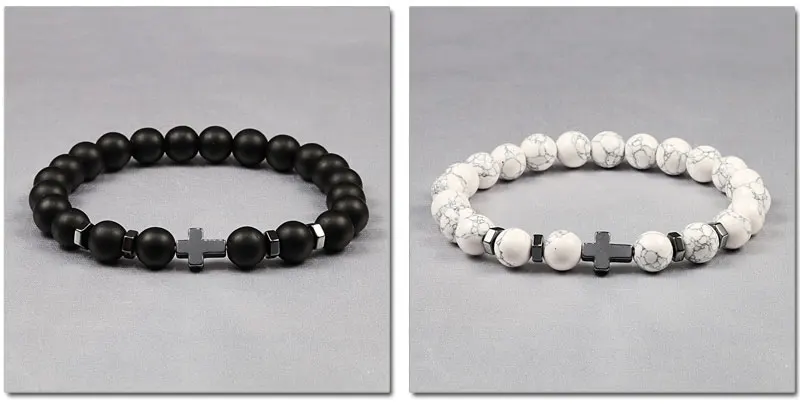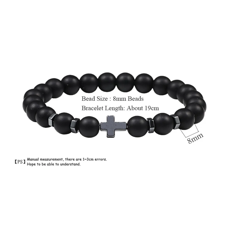 8 мм бусины Крест гематит браслет и браслеты из натурального черного лавового камня шармы браслеты для женщин и мужчин Йога ювелирные изделия pulseras hombre