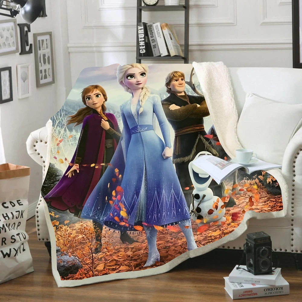 Одеяло с персонажем мультфильма Холодное сердце, Эльза и Анна, одеяло с шерпой и 3D-принтом для кровати, домашний текстиль, сказочный стиль для девочек