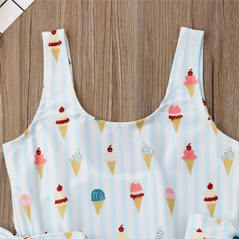 Детский слитный купальник с принтом мороженого, летняя пляжная одежда для маленьких девочек, купальник для маленьких девочек с бантом, одежда для плавания