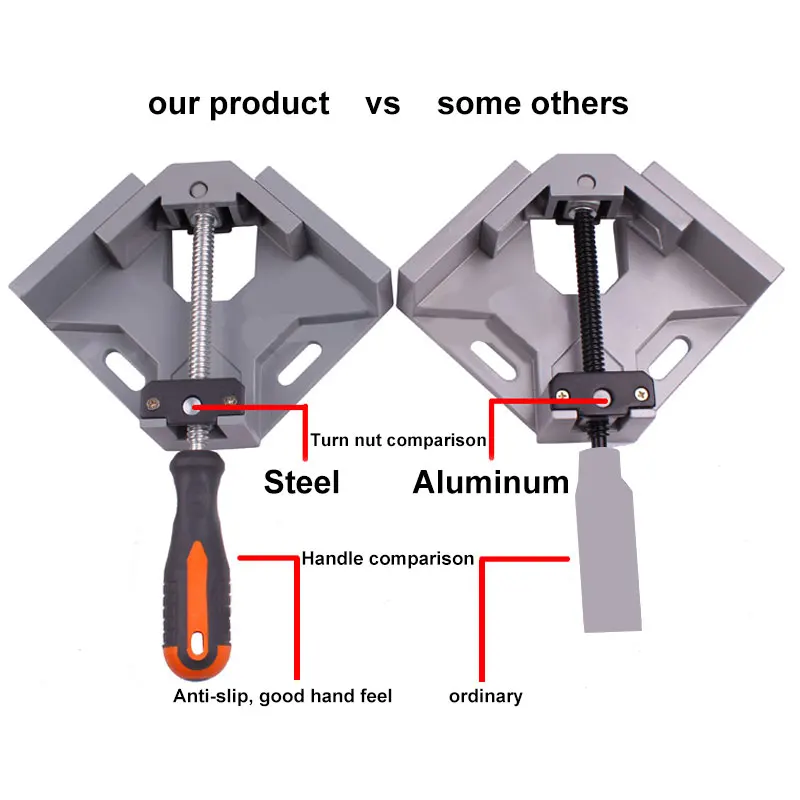 Зажим под прямым углом 90 градусов для деревообработки, алюминиевый Столярный зажим для тиснения, деревянная рама, одна ручка, угловой зажим 90 градусов
