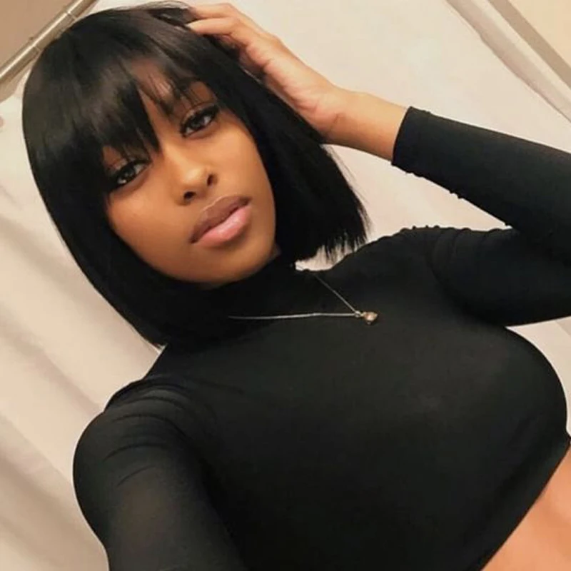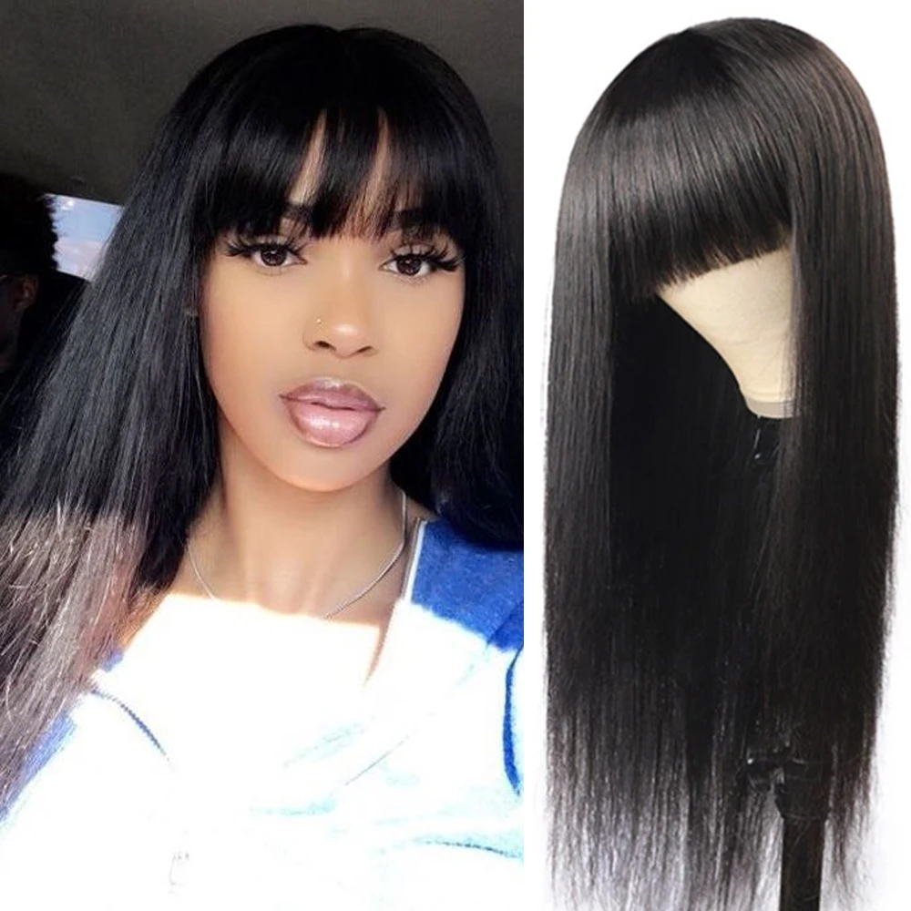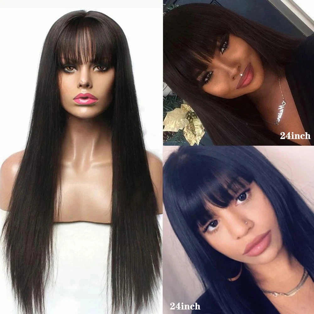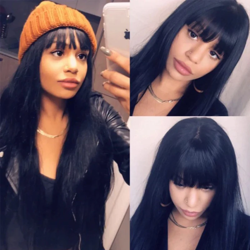 Парики из человеческих волос с челкой для чернокожих женщин, парик прямого бразильского взрыва естественного цвета, парик Remy из длинных человеческих волос 150% KEMY