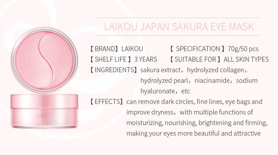 Патчи под глаза LAIKOU Sakura коллагена, маска для кожи вокруг глаз...