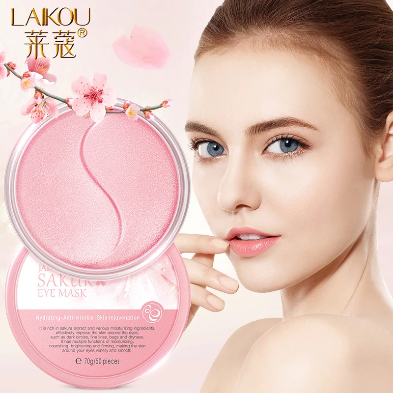 Коллагеновая маска для глаз LAIKOU с цветами вишни, Увлажняющие гелевые патчи для глаз, удаление темных кругов, антивозрастной мешок, уход за кожей вокруг глаз