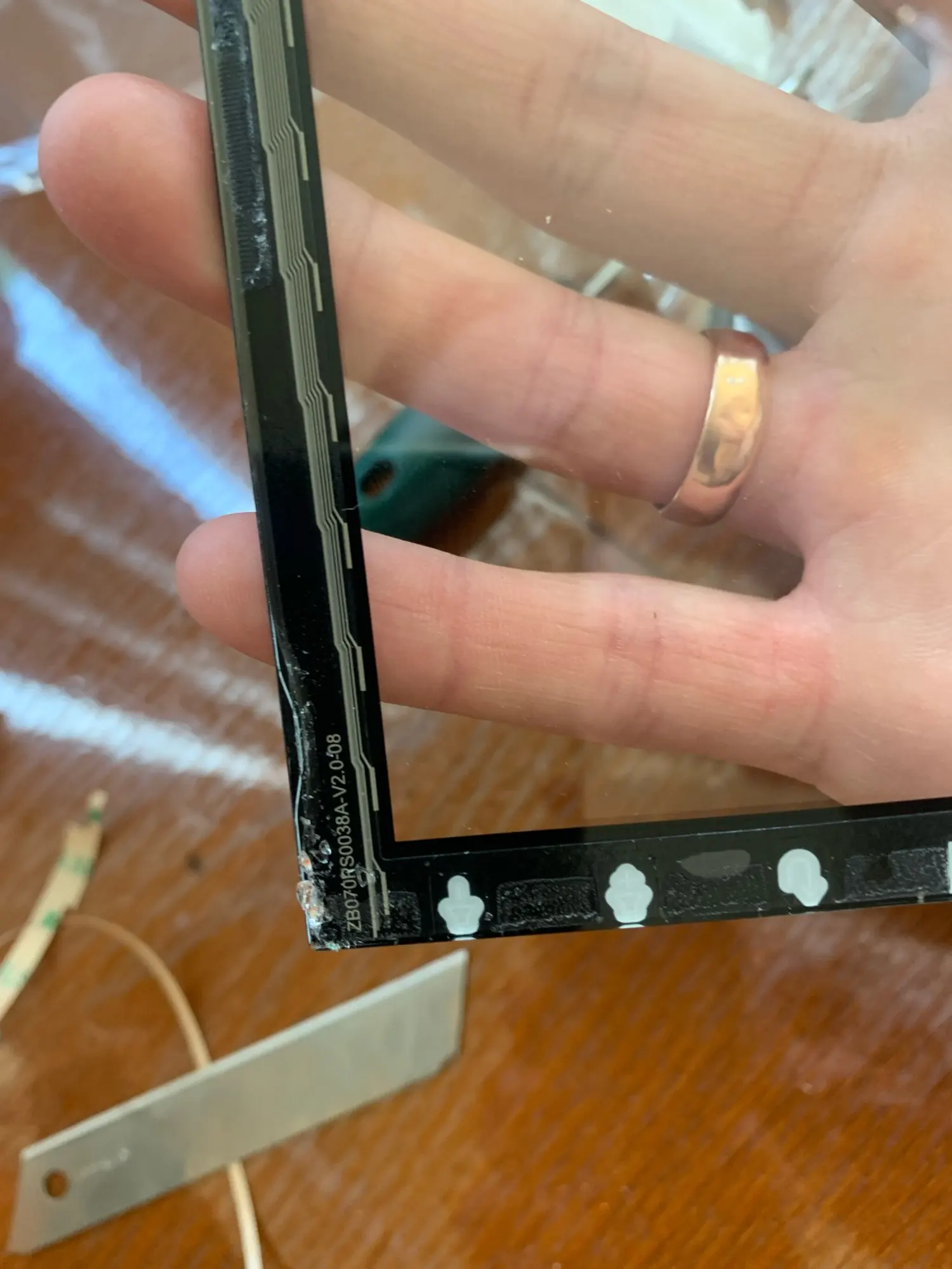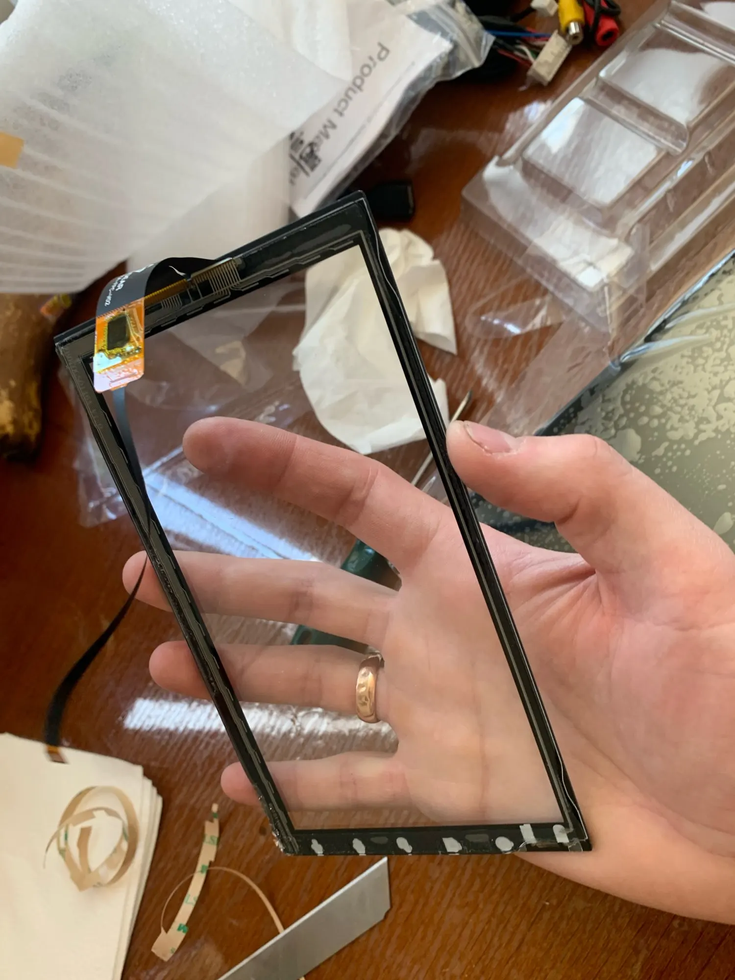 Пришел тач довольно быстро (менее месяца). Упакован отлично. Всё целое. Установил - работает. Отзыв на нажатия точный, несмотря на то, что вместо GT911 установлен GT915(есть незначительные отличия по даташиту). Есть небольшой брак - капелька воздуха (менее 0,5мм) между стеклами(или в одном из стекол) в правом нижнем углу. В принципе это не критично. Видно только в выключенном состоянии, и то только если знаешь куда смотреть.