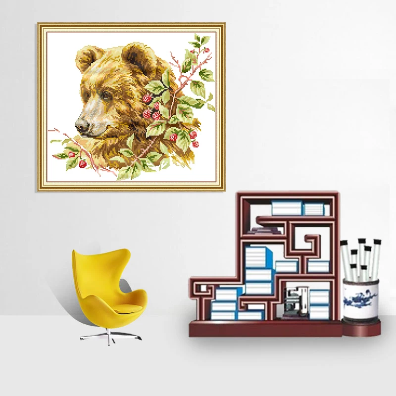 Коричневый медведь 2 Joy Sunday набор крестиков 14CT 11CT Печать холст DIY Ручная вышивка наборы рукоделие Наборы домашний декор