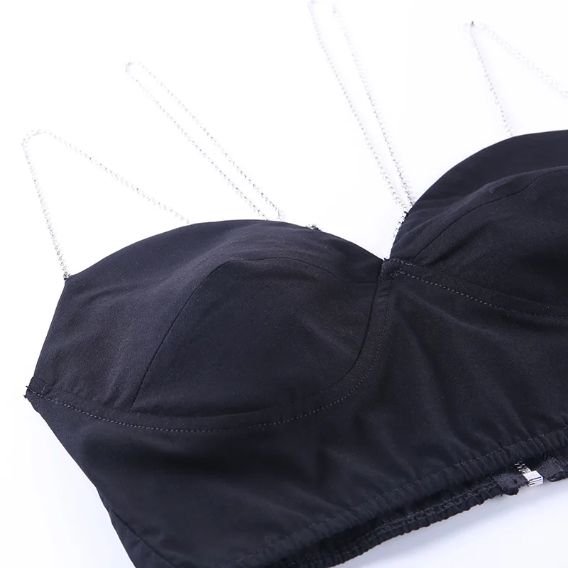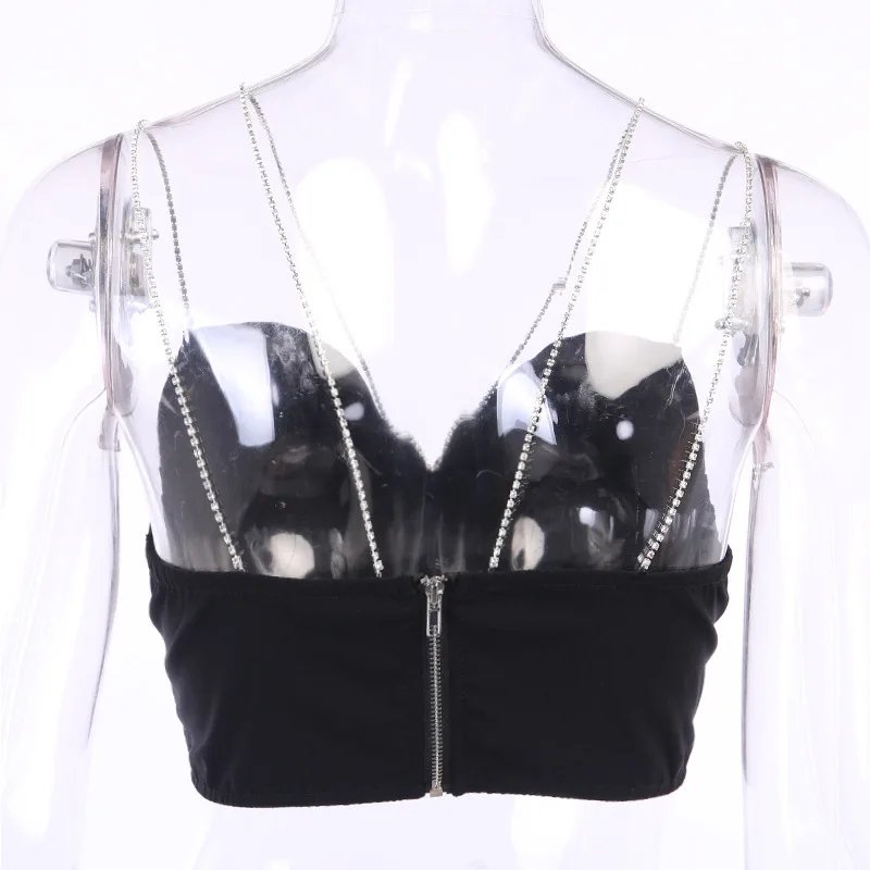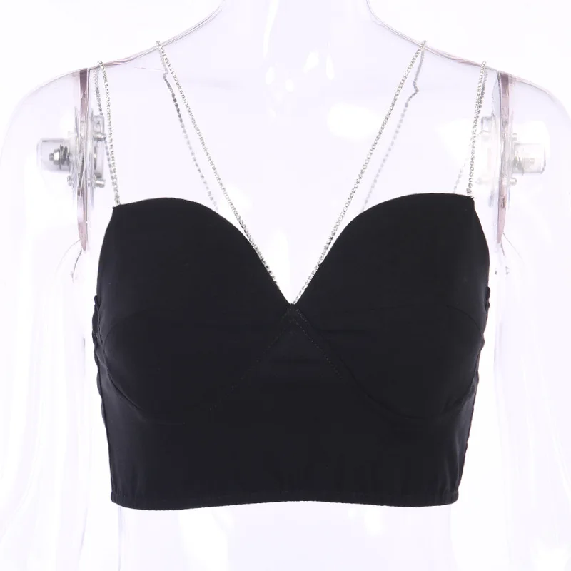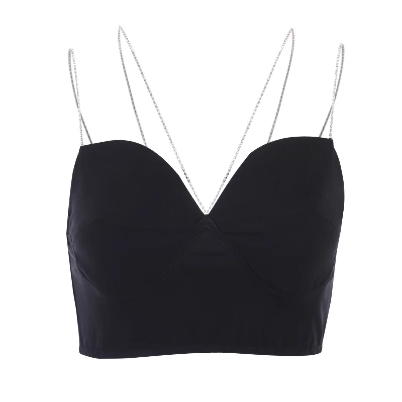 УКОРОЧЕННЫЙ ТОП стразы на бретельках с цепочками, женский сексуальн...
