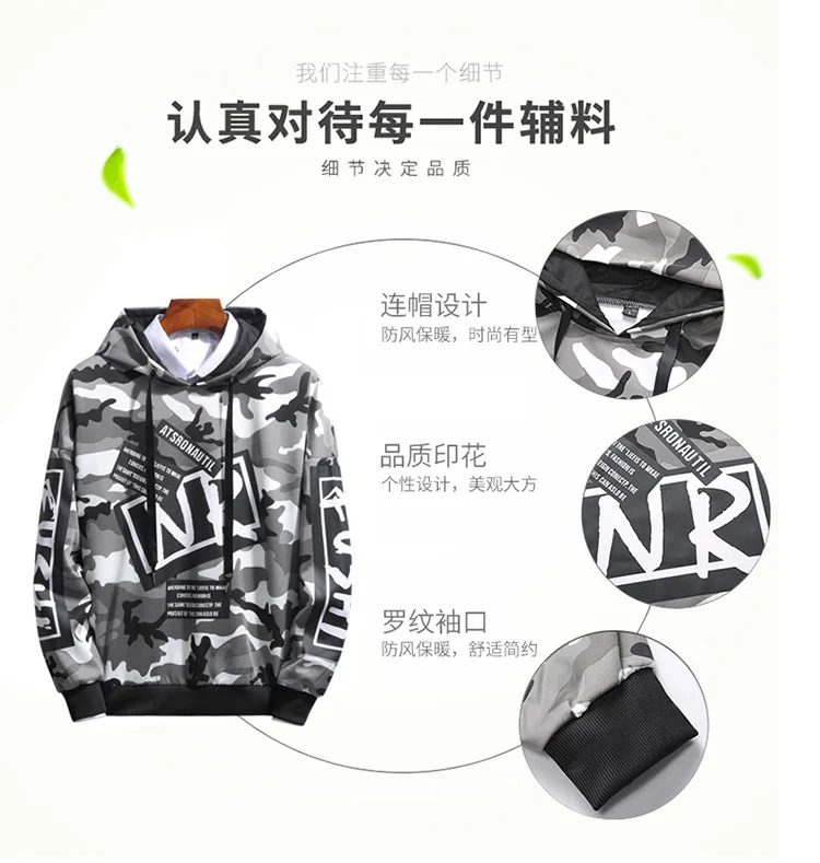 Мужские камуфляжные толстовки, уличная одежда в стиле хип-хоп, свит...