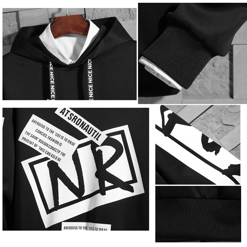 Толстовка мужская с капюшоном, свитшот с длинным рукавом, с надписью, в стиле хип-хоп, черно-белый
