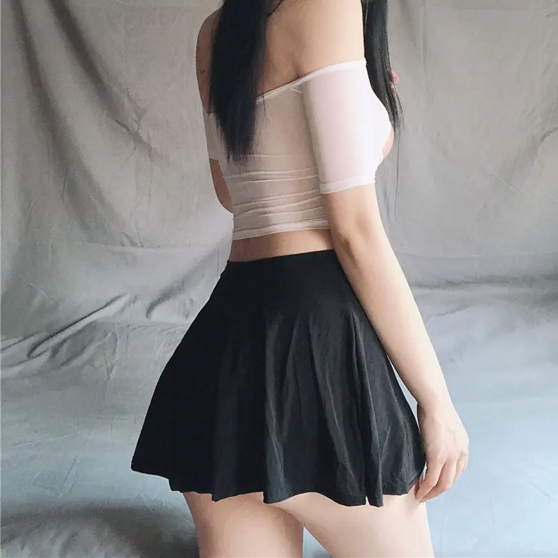 Сексуальная Женская плиссированная юбка, милая трапециевидная мини-юбка с низкой посадкой и оборками, микро мини-юбка, Женская Прозрачная Сексуальная сценическая одежда D9