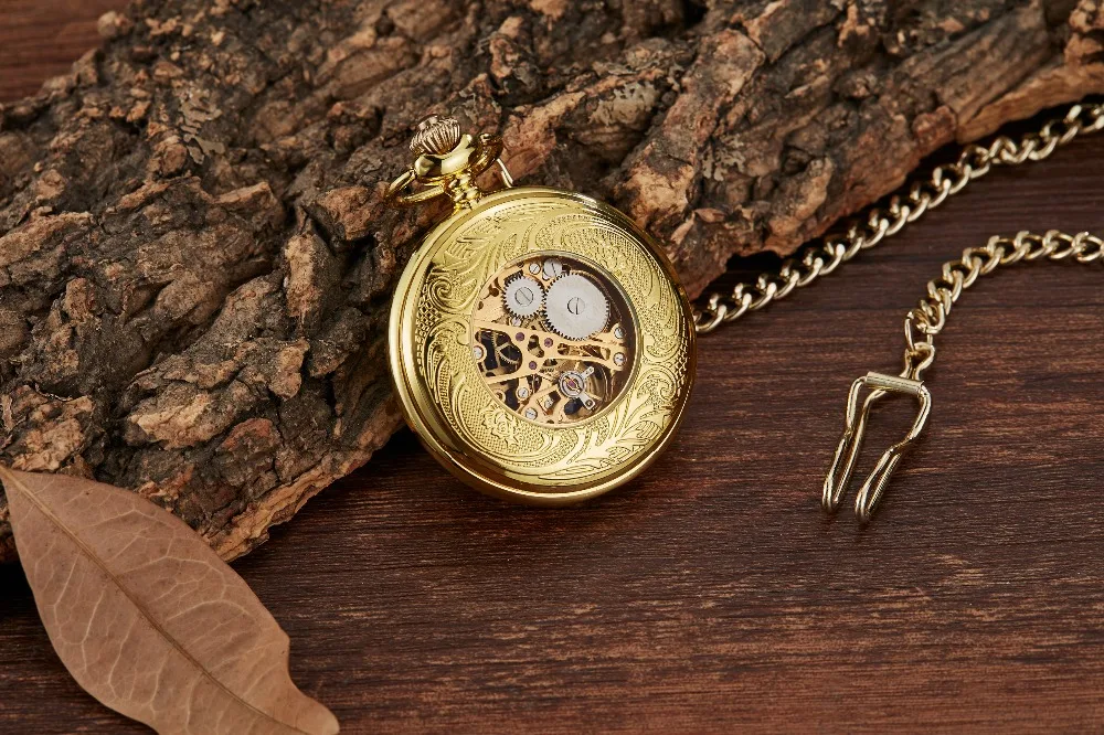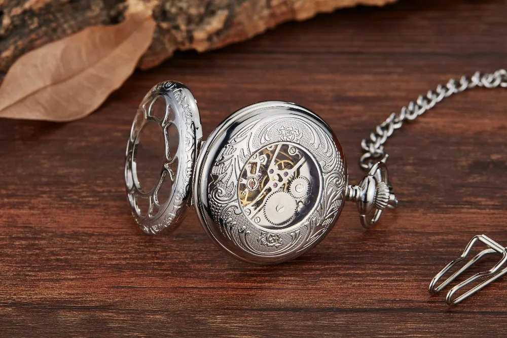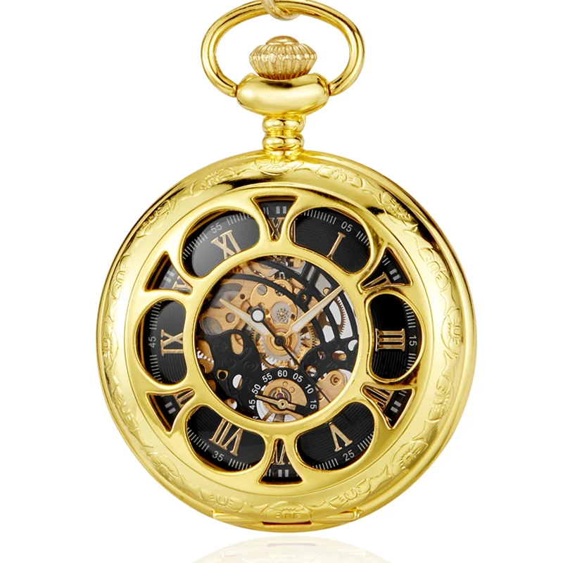 Автоматические Механические карманные часы-скелетоны в стиле ретро с цветами, цепочка-брелок, стальные изысканные скульптуры, женские часы с римскими цифрами