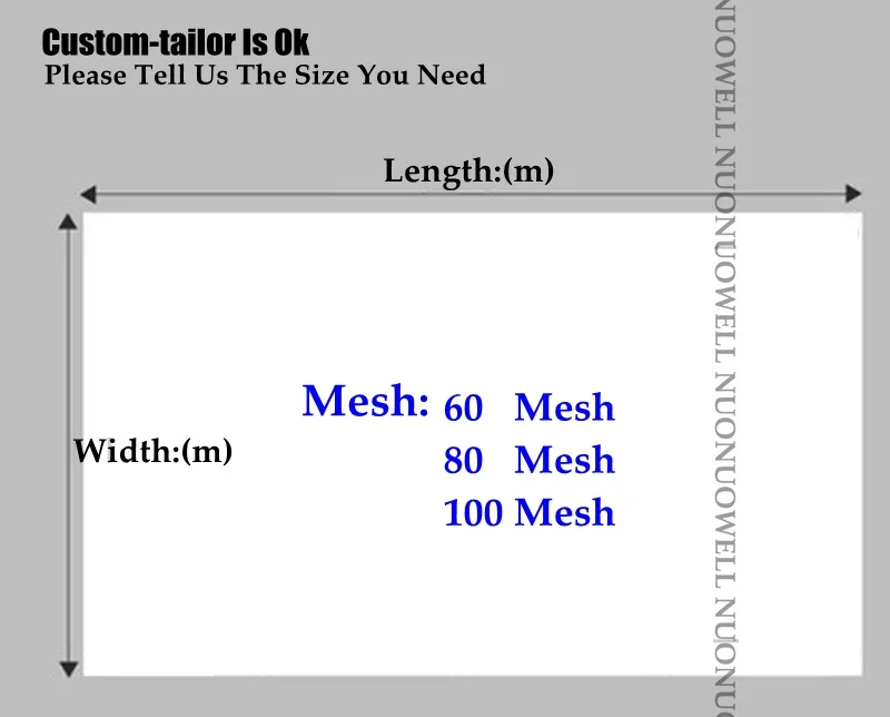 Сообщите нам информацию: * Сетка: 60 ячеек, 80 ячеек или 100 Ячеек * Ширина: (м) * Длина: (м)