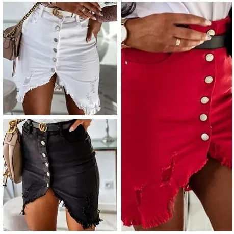Женские летние джинсовые юбки с завышенной талией, джинсы на пуговицах, Женская Повседневная облегающая юбка неправильной формы с кисточками (без пояса)