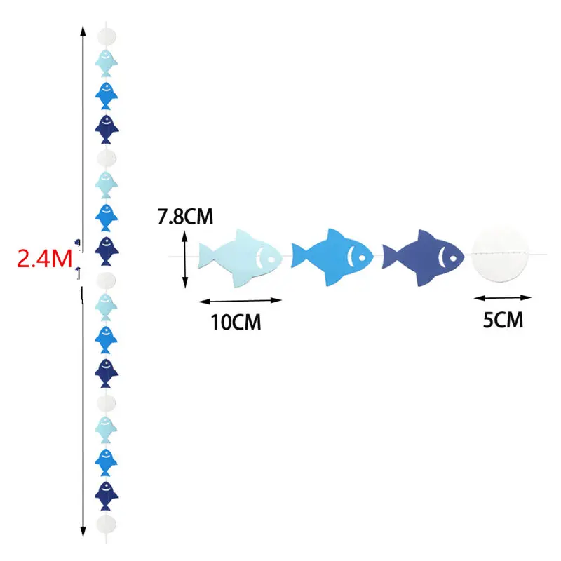 Гирлянда из бумаги с изображением рыбок, 2,4 м