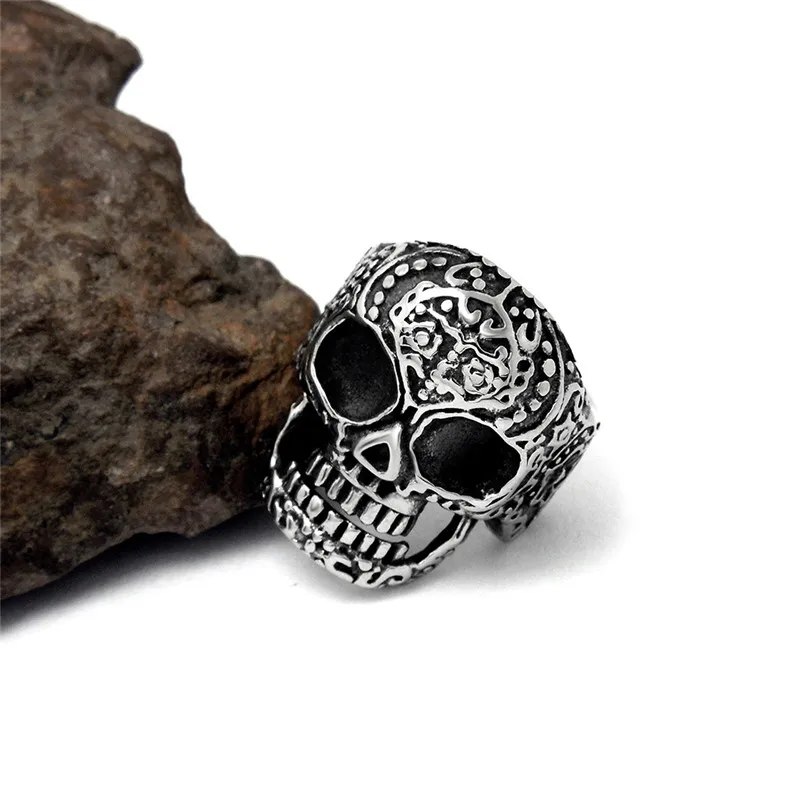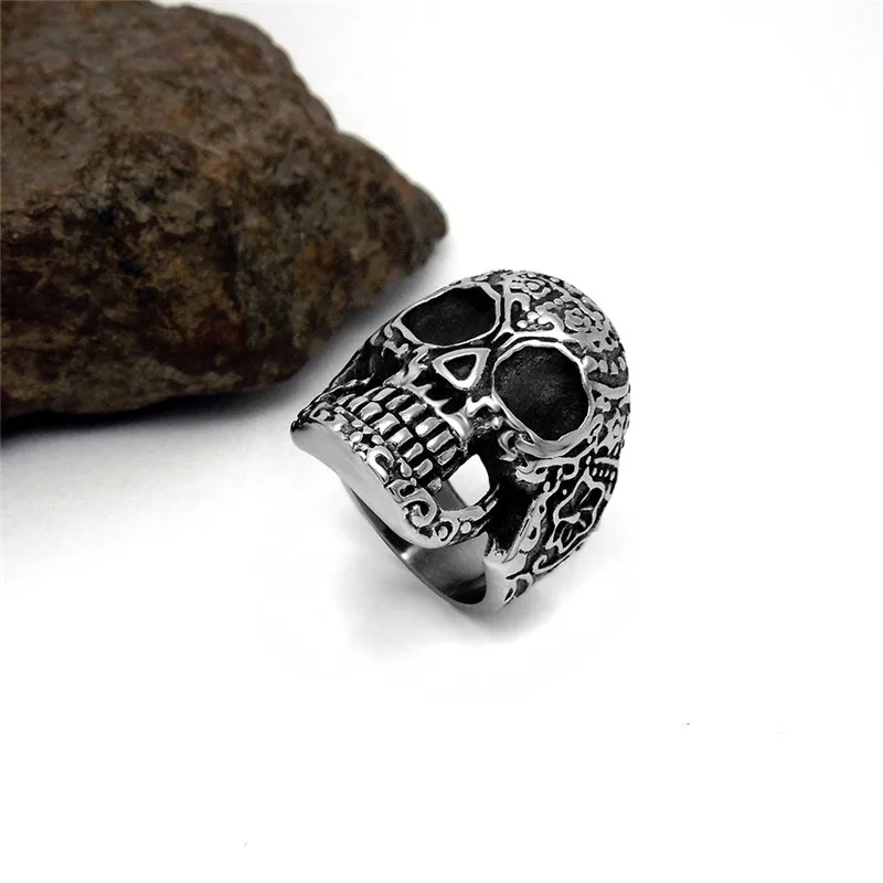 Винтажное готическое мужское кольцо с черепом из нержавеющей стали