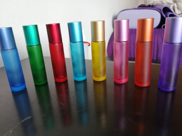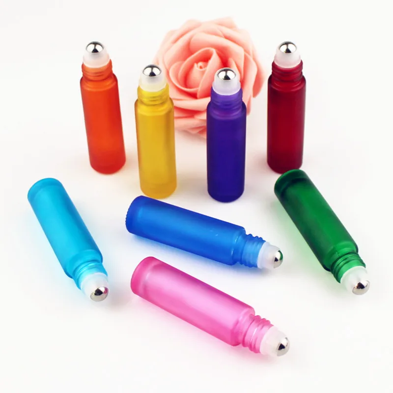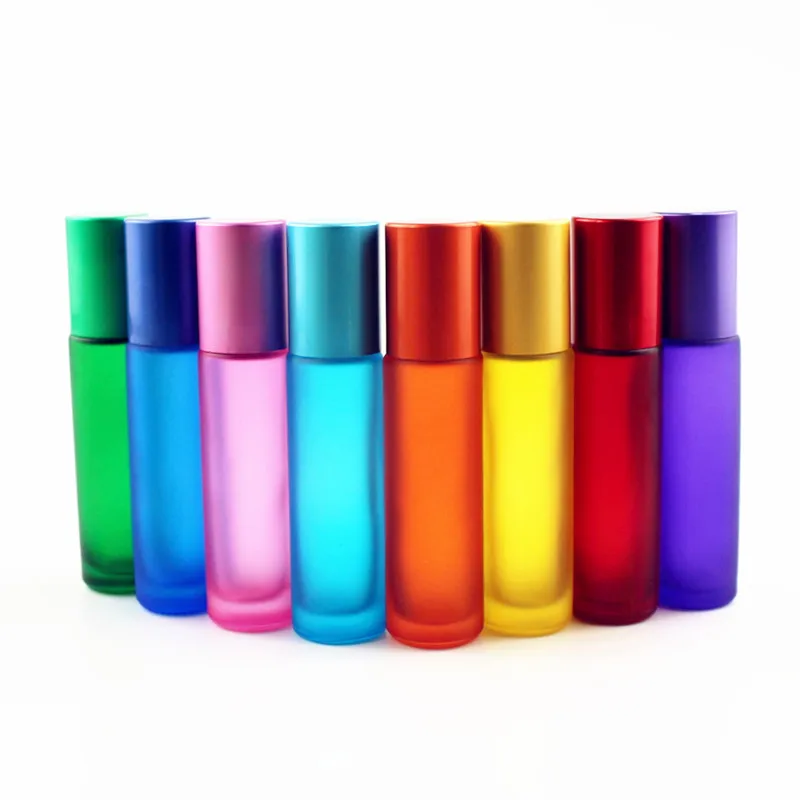 10 мл красочная стеклянная бутылка для эфирных масел с шариком из натурального драгоценного камняпустые многоразовые флаконы для духов с металлическим шариком