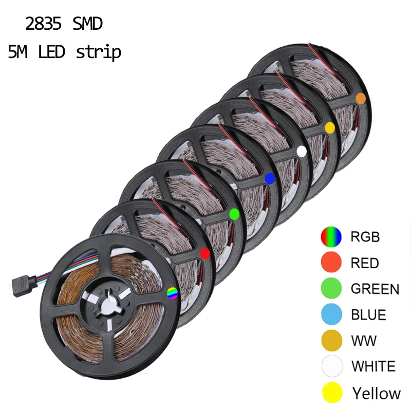 DC12V RGB светодиодный светильник, лента 2835, не водонепроницаемая, 1-5 м, 60 Светодиодный/м, RGB светодиодный светильник, Диодная гибкая лента, Домашний Светильник