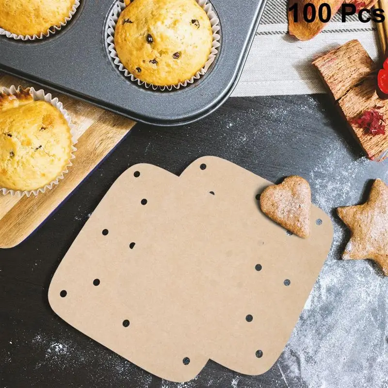 100 шт. бумаги для фритюрницы, антипригарный коврик для гриля, термостойкий Коврик, жаропрочный противень (коричневый)