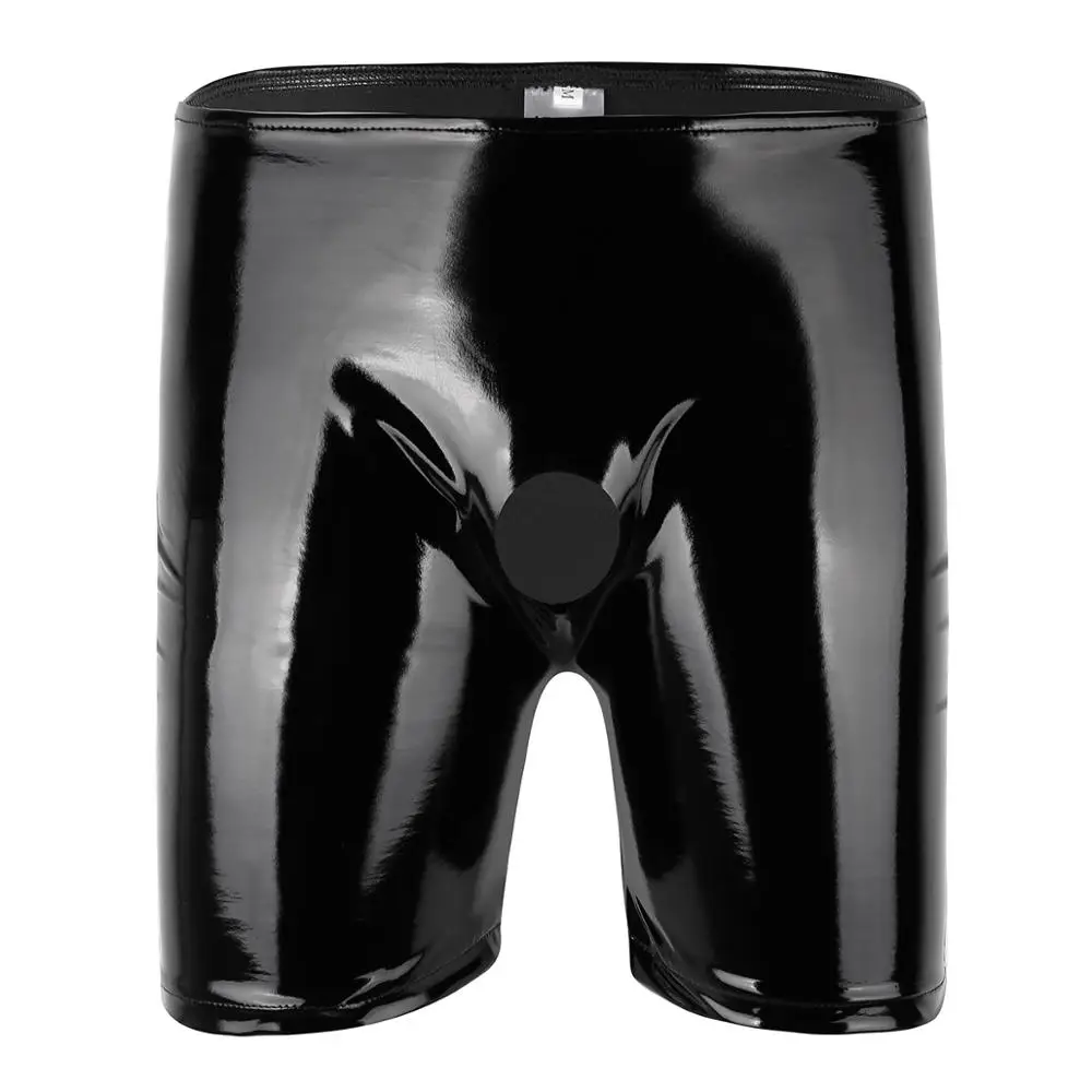 Alvivi шорты черные Мужское нижнее белье блестящие лакированные кожаные боксеры с открытым пенисом Короткие трусы с открытым мешочком с отверстием для пениса Клубная вечевечерние Мужское нижнее белье латексные кожаные шорты