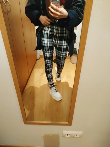 Я в диком восторге! приятная ткань! Сели отлично! Заказала вдогонку еще 3 штуки! Из минусов - клетка на полных ногах создает иллюзию кривых ног... Поэтому гораздо лучше подойдут на худые ноги. Но даже эта причина не остановила меня =))