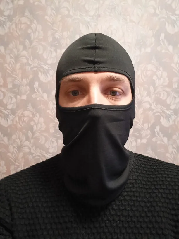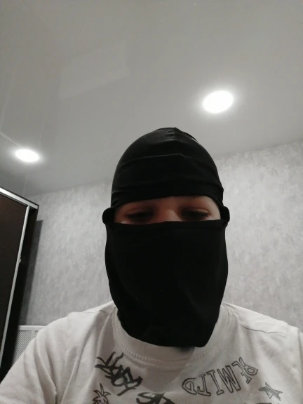 Очень комфортный синтетический материал, насколько комфортен в носке пока не скажу. Эластичный шов позволяет носить Балаклава и с полностью открытым лицом. Стык швов на лбу - не комфортный, предполагаю, что будут оставаться следы после носки. Вцелом, гут за эти деньги.