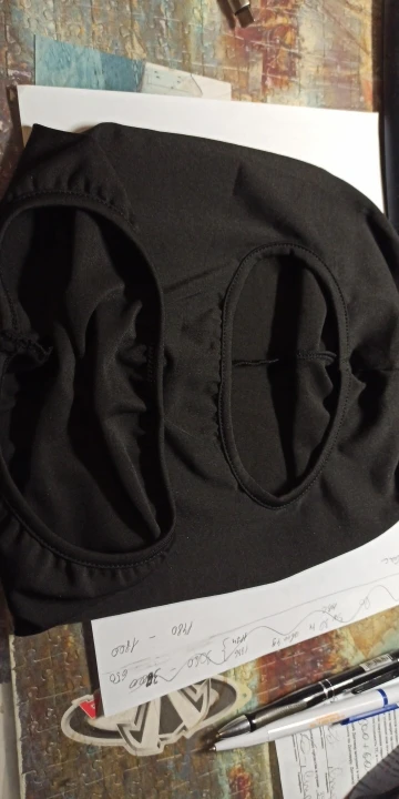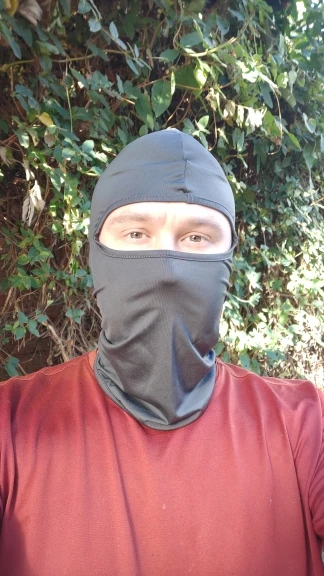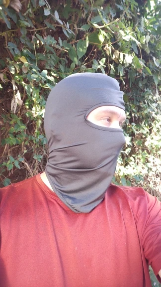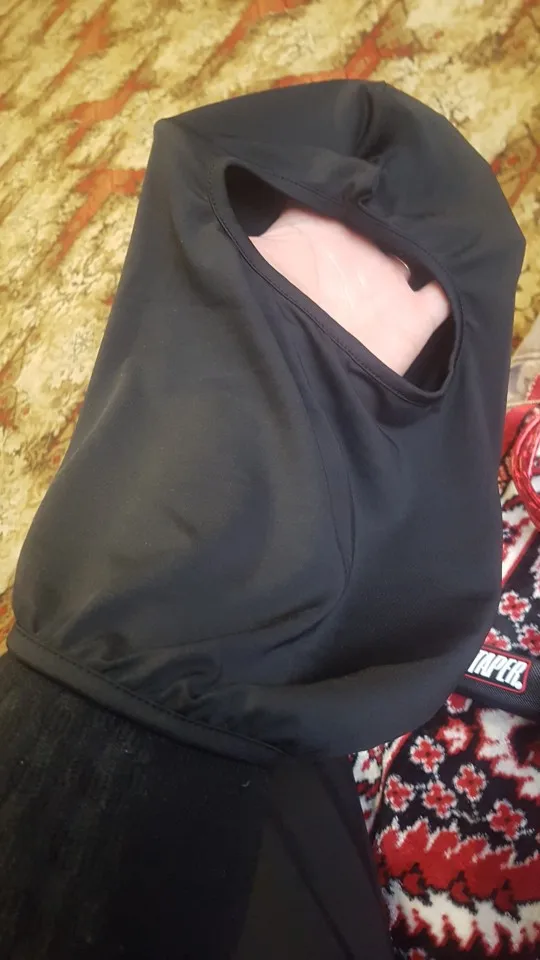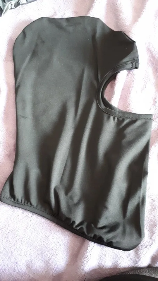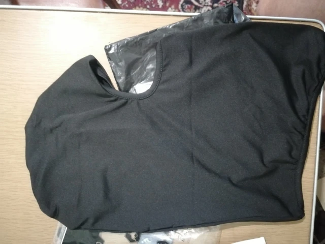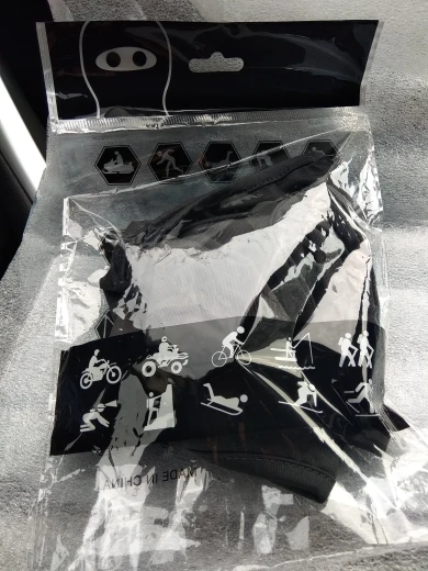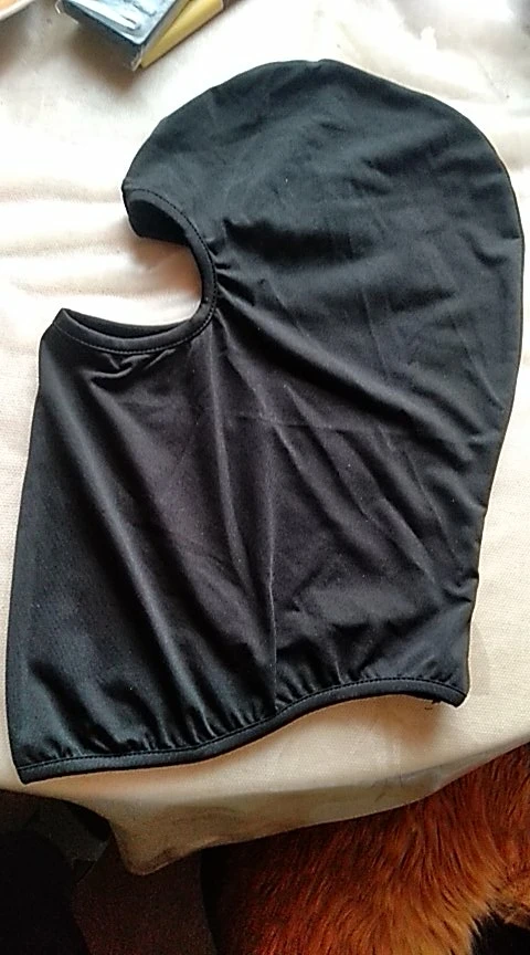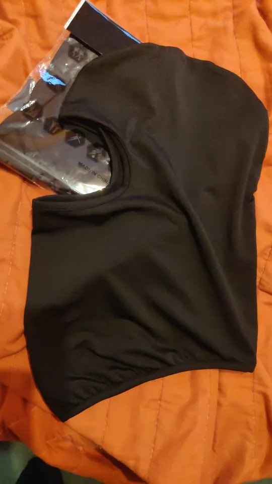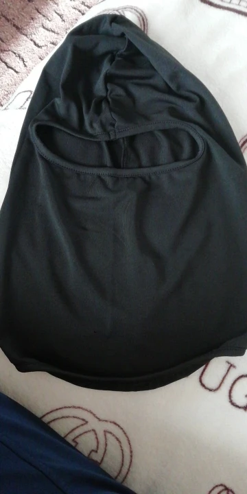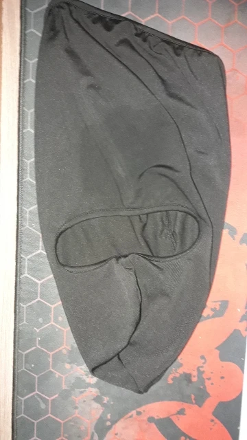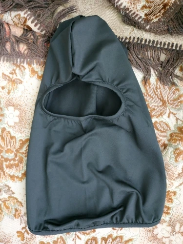 Не плохая, пованивает, думаю выветрится. Вырез великоват, при желании можно просунуть всю голову и оставить на шее, в принципе можно носить закрыв нос и все остальное, оставив глаза. В теории должна защитить от легкого холода и пыли в сухую погоду.