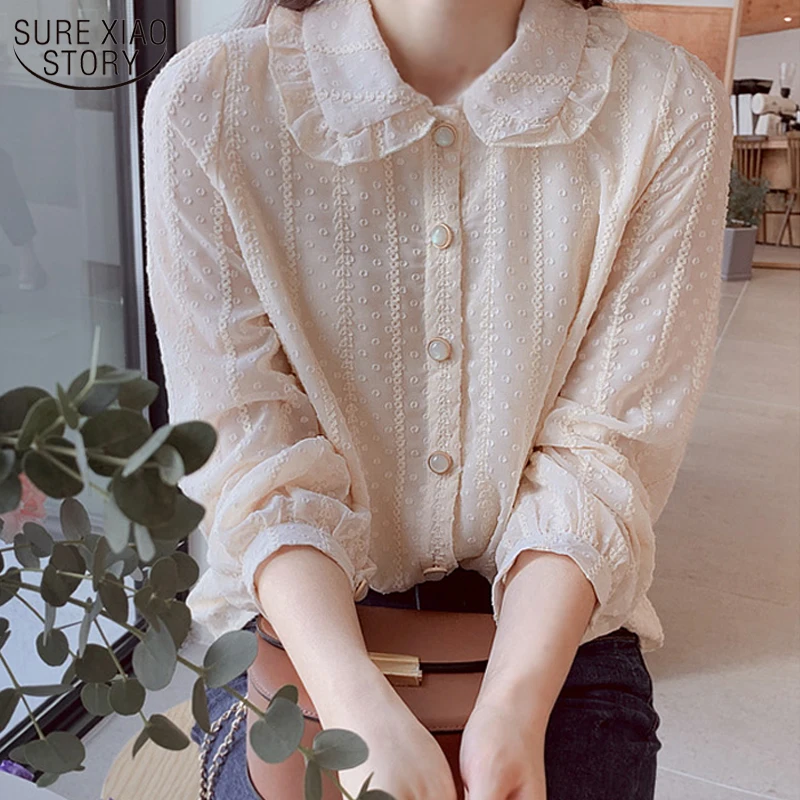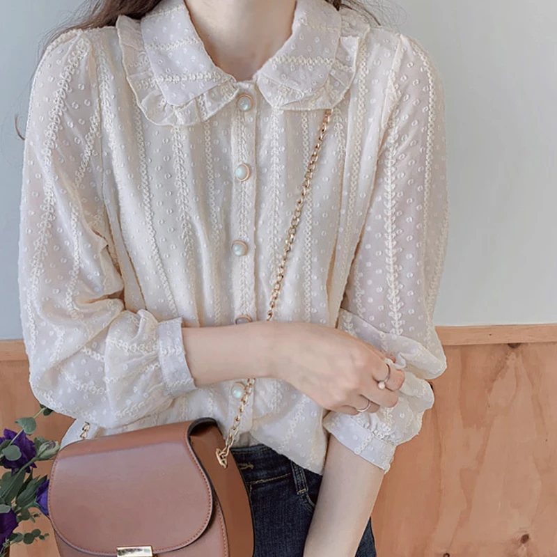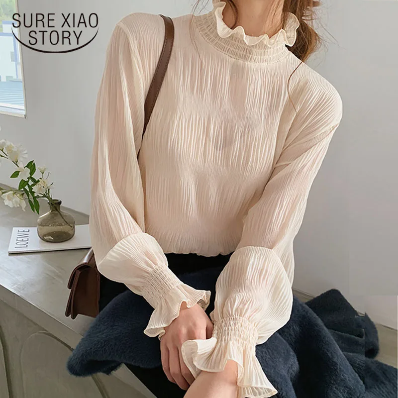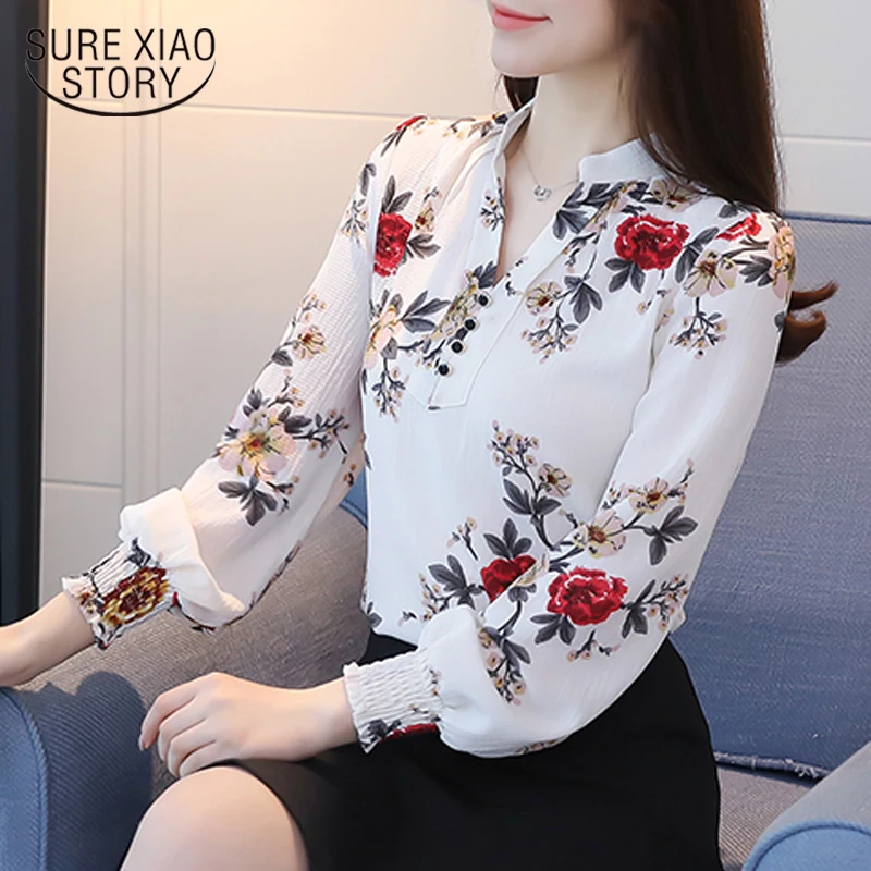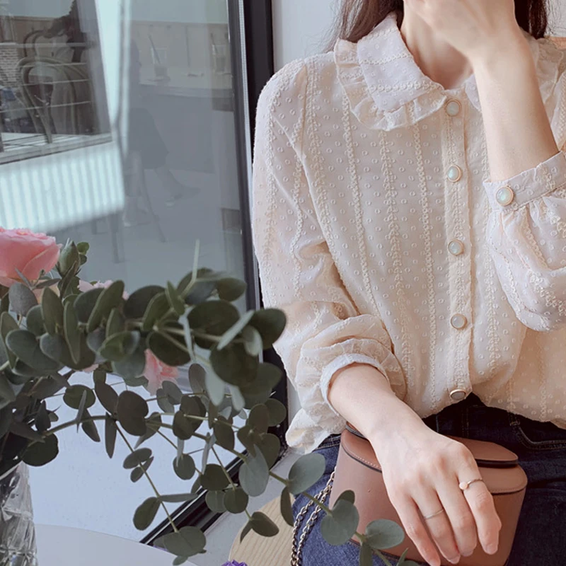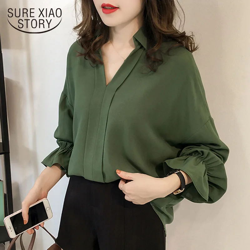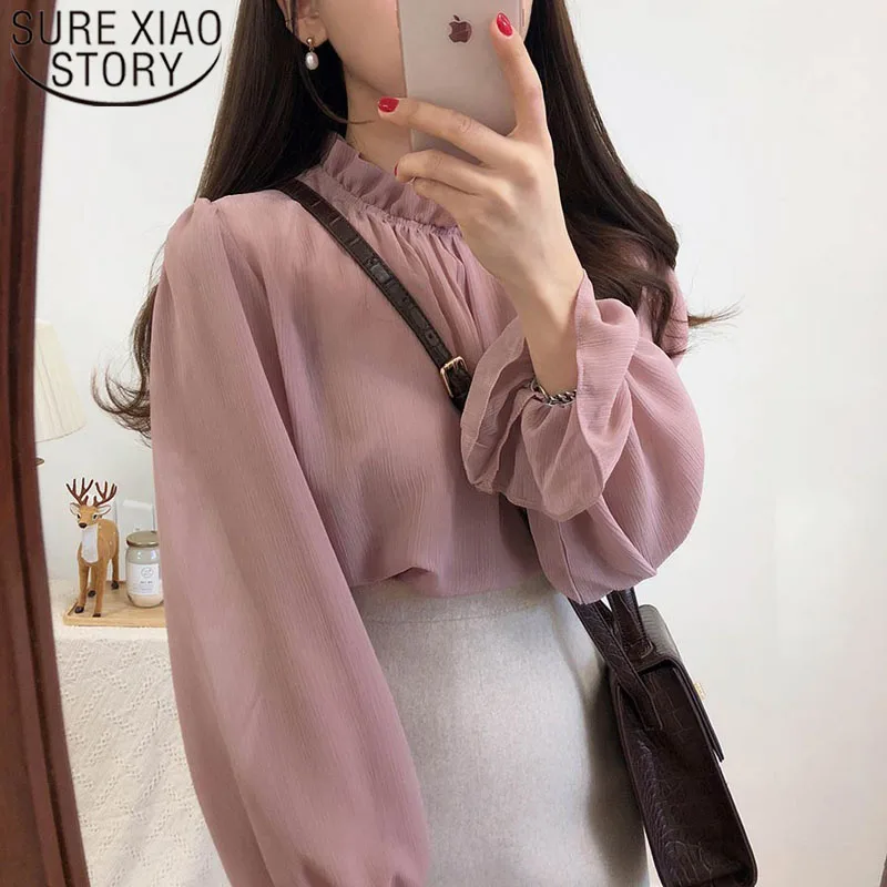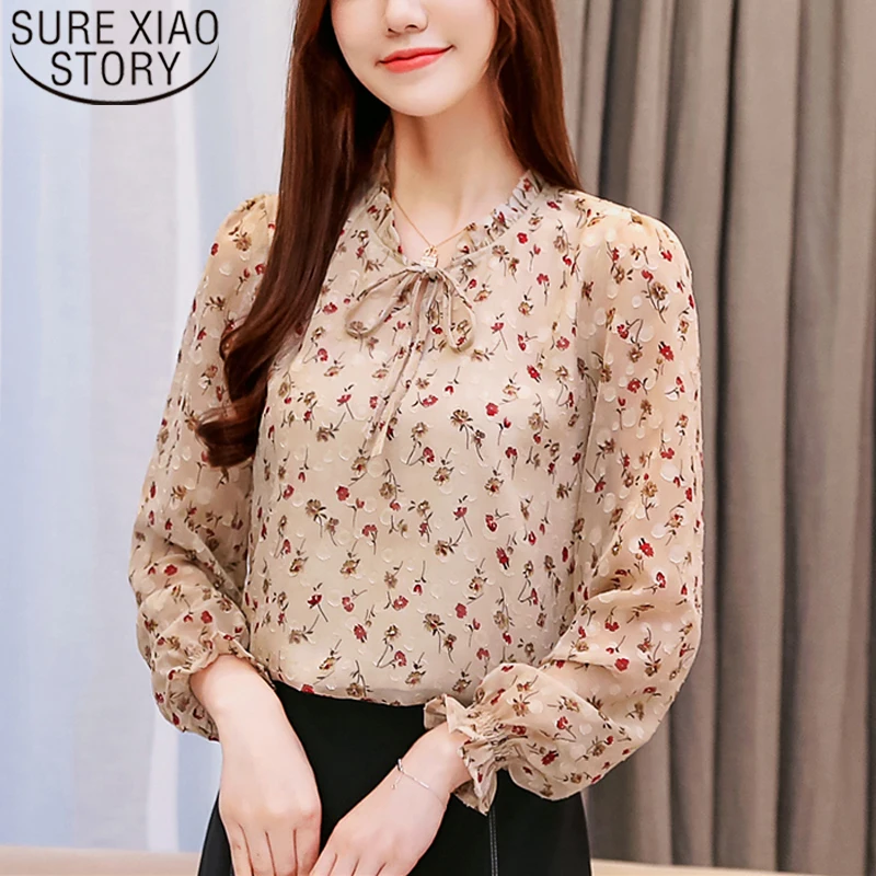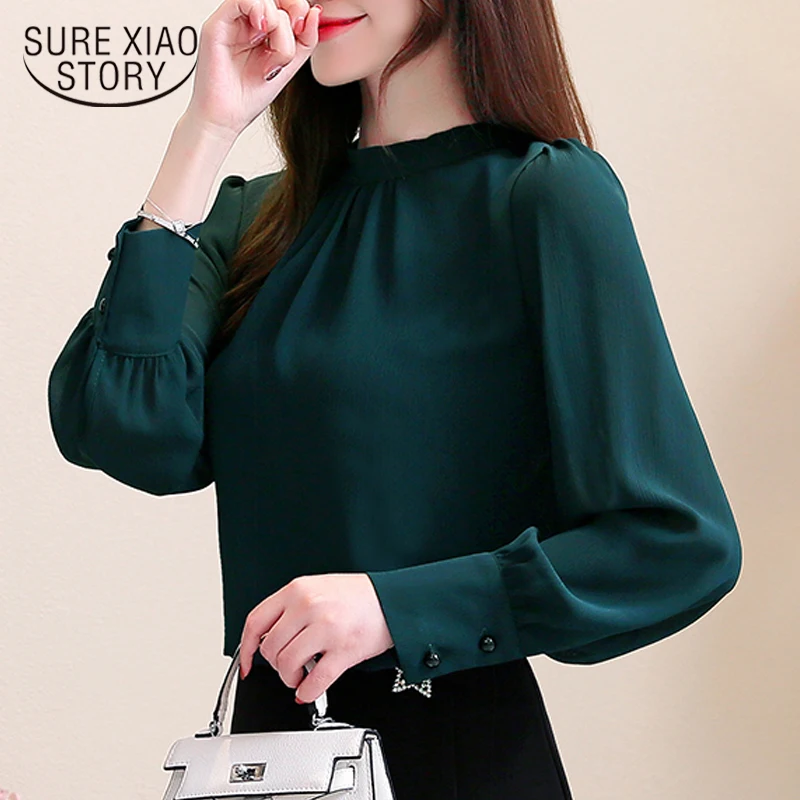 Блузка шифоновая с длинным рукавом, в западном стиле, весна-осень, 10351
