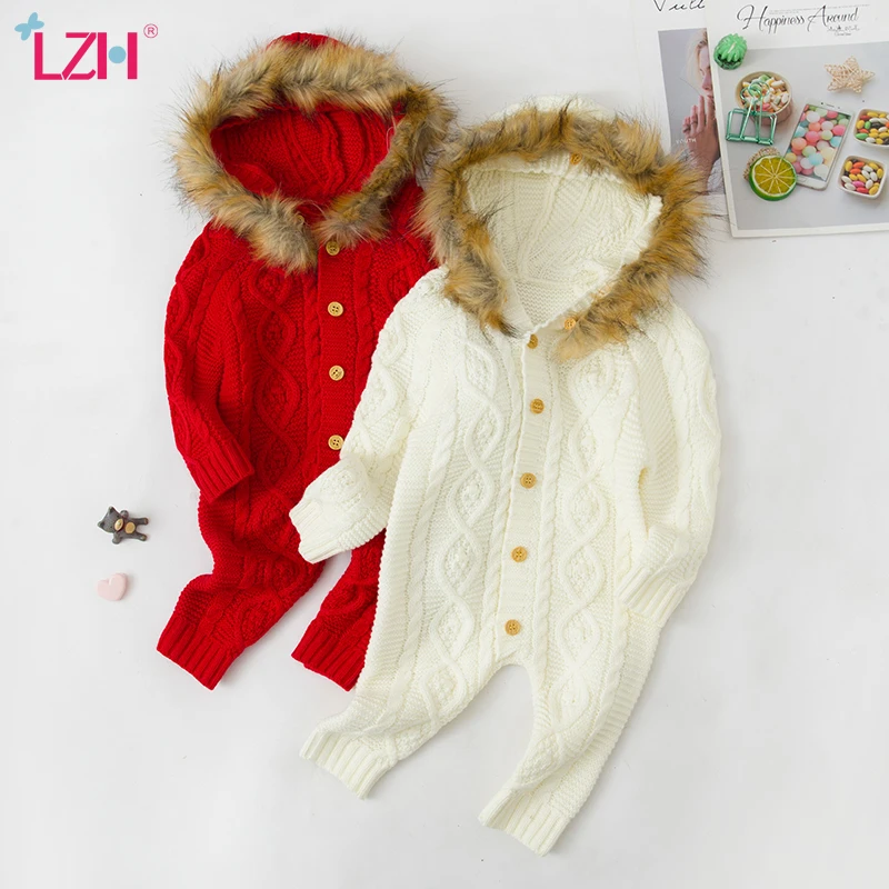 Комбинезон детский LZH, трикотажный, с капюшоном, зима ползунки Одежда для новорожденных