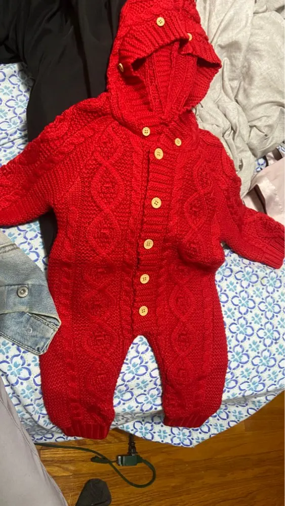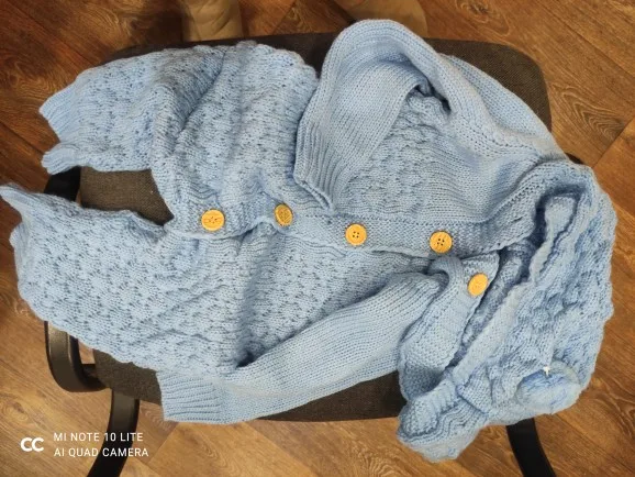 заказала на 18 мес. ребенку 10 мес в притык ,на ножках коротковат ,тоненькая вязка ,полиэстер 100% ,смотрится дёшево ,качеством не довольна ,кое где просвечивается ,из за того что тоненький топорщатся пуговицы ,мех искусственный пристёгивается на пуговицах